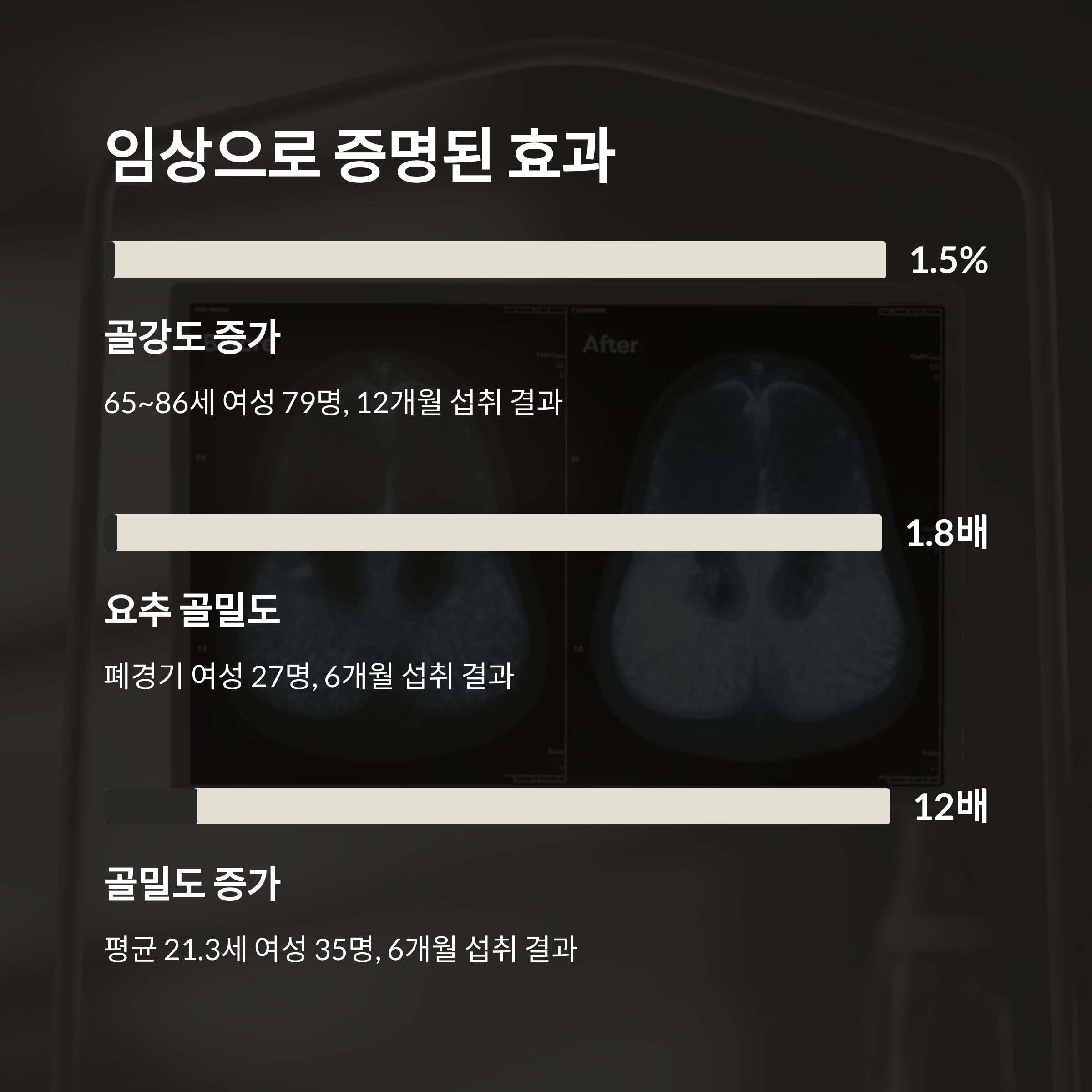 골밀도 자체를 증가시키는 효과가 있음을 증명하고 있습니다.