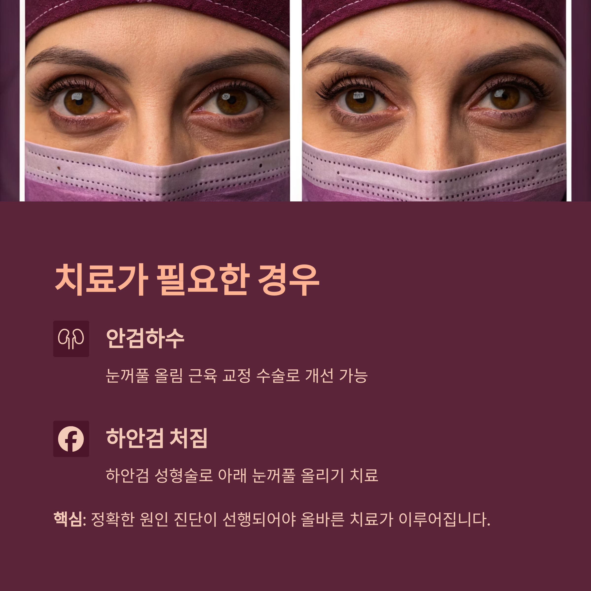 | 후천적 원인 | 안검하수, 노화, 갑상선 문제, 외상 등 |