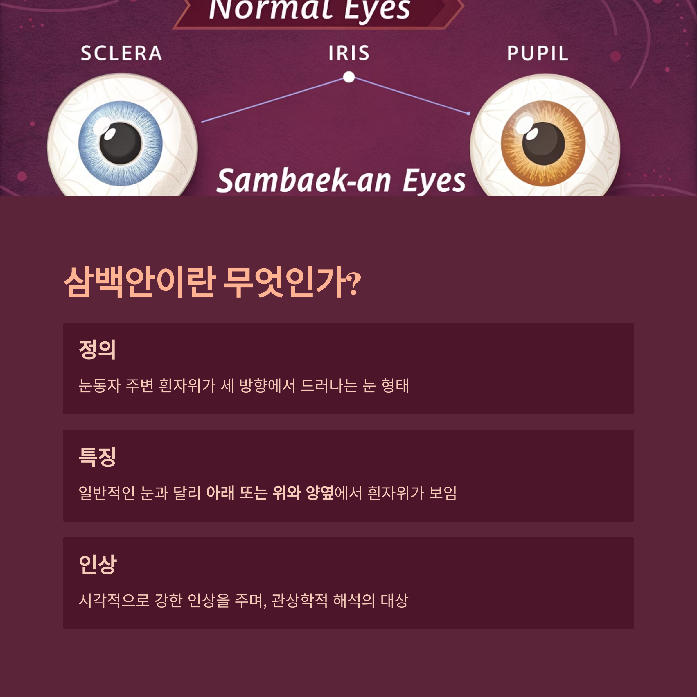 그중 삼백안(三白眼)은 독특한 시각적 특징으로 많은 관심을 받고 있습니다.