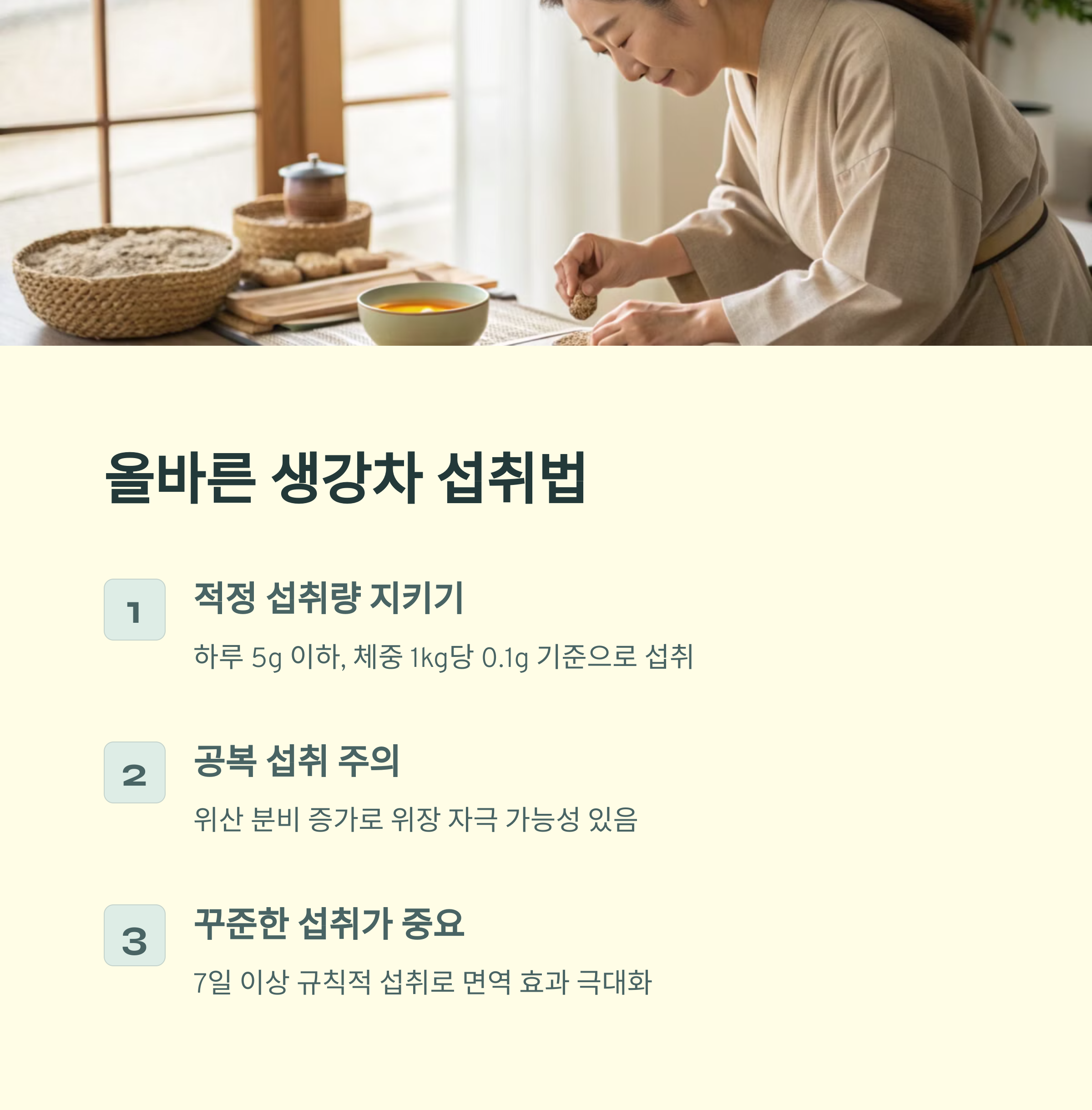 | 공복 생강차 | 면역반응 변화 | 섭취 주의사항 |