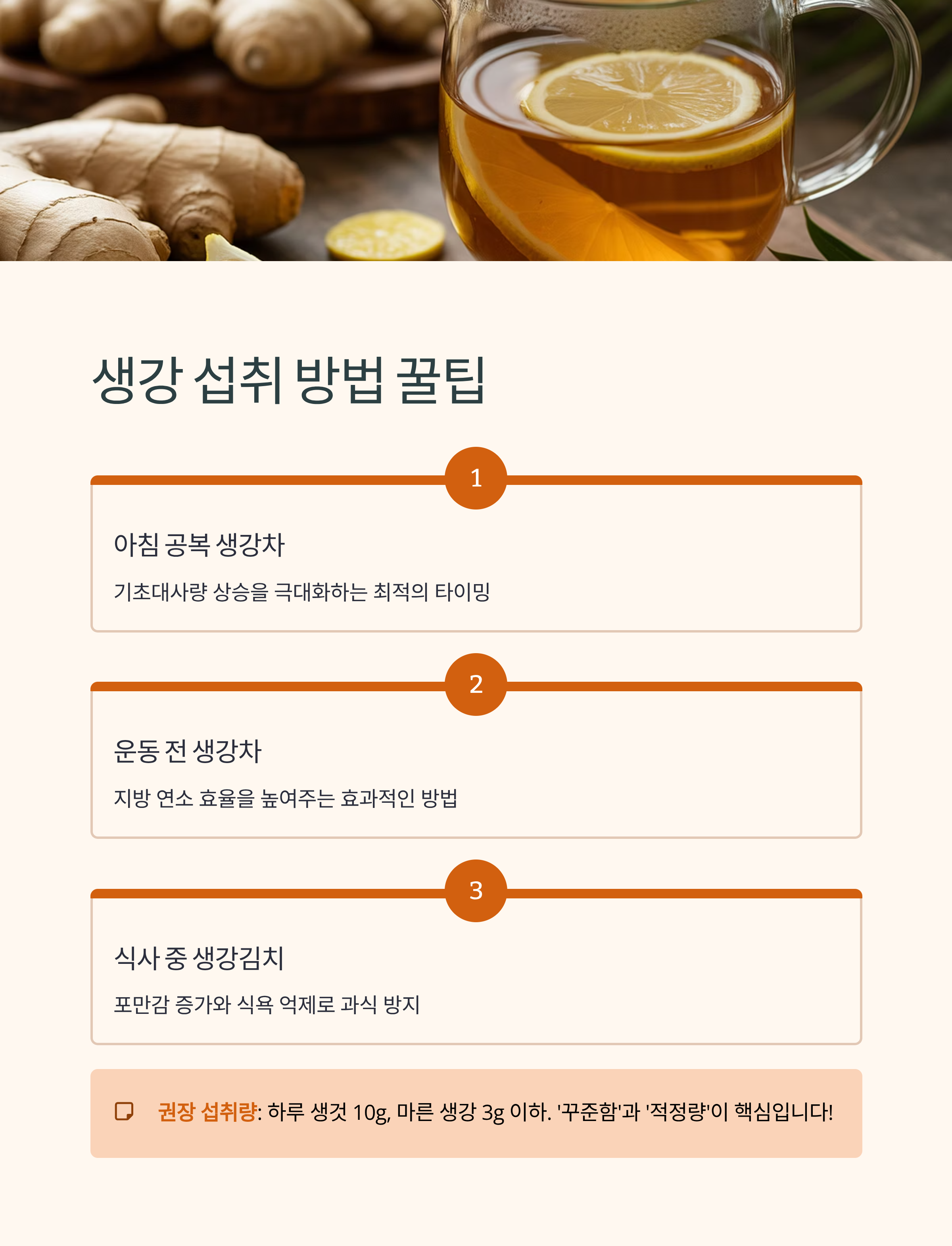 - 아침 공복 생강차 한 잔: 기초대사량 상승 극대화