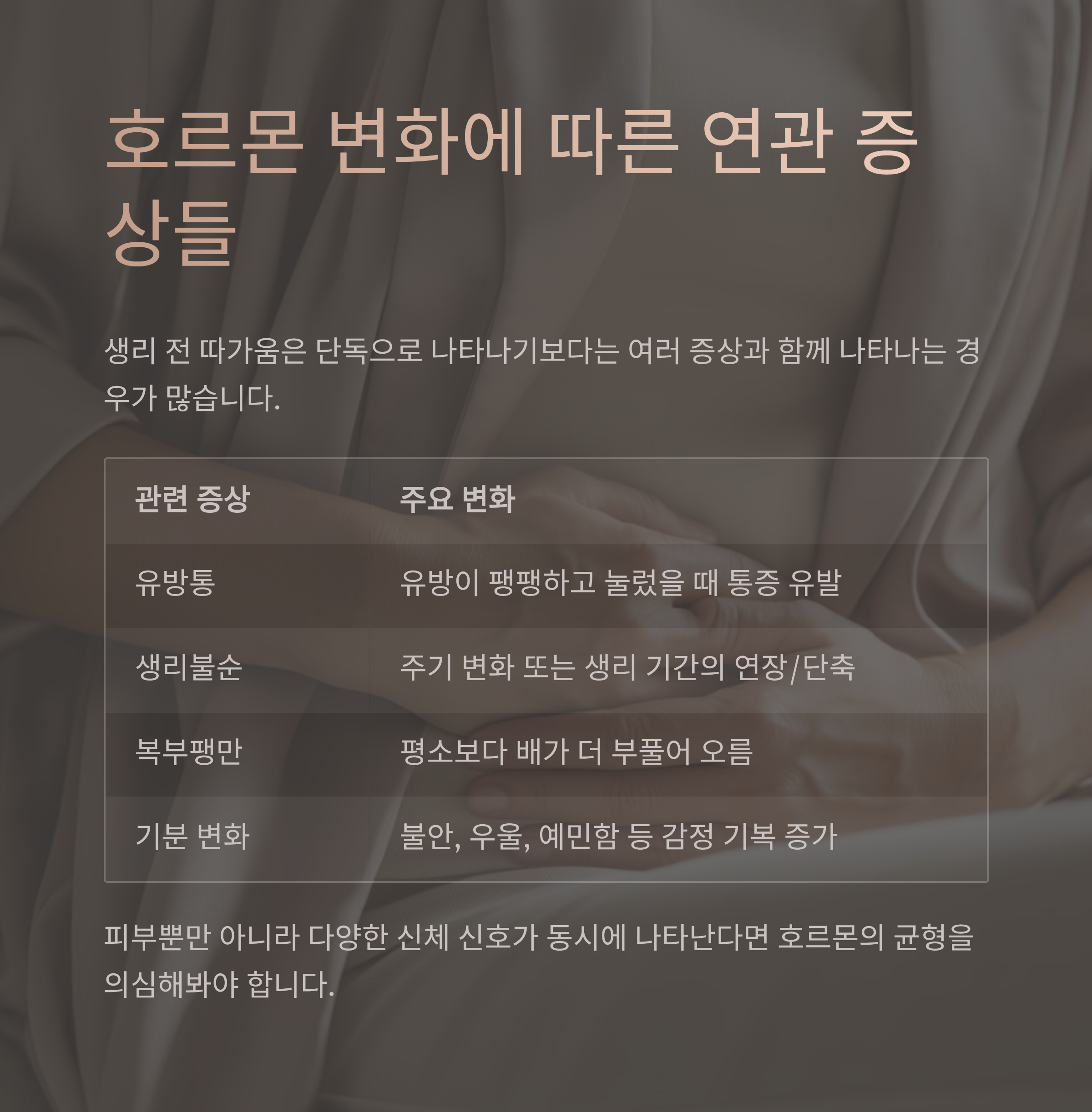 호르몬 변화는 내 몸의 중요한 균형 상태를 알려주는 바로미터이기도 하니까요.
