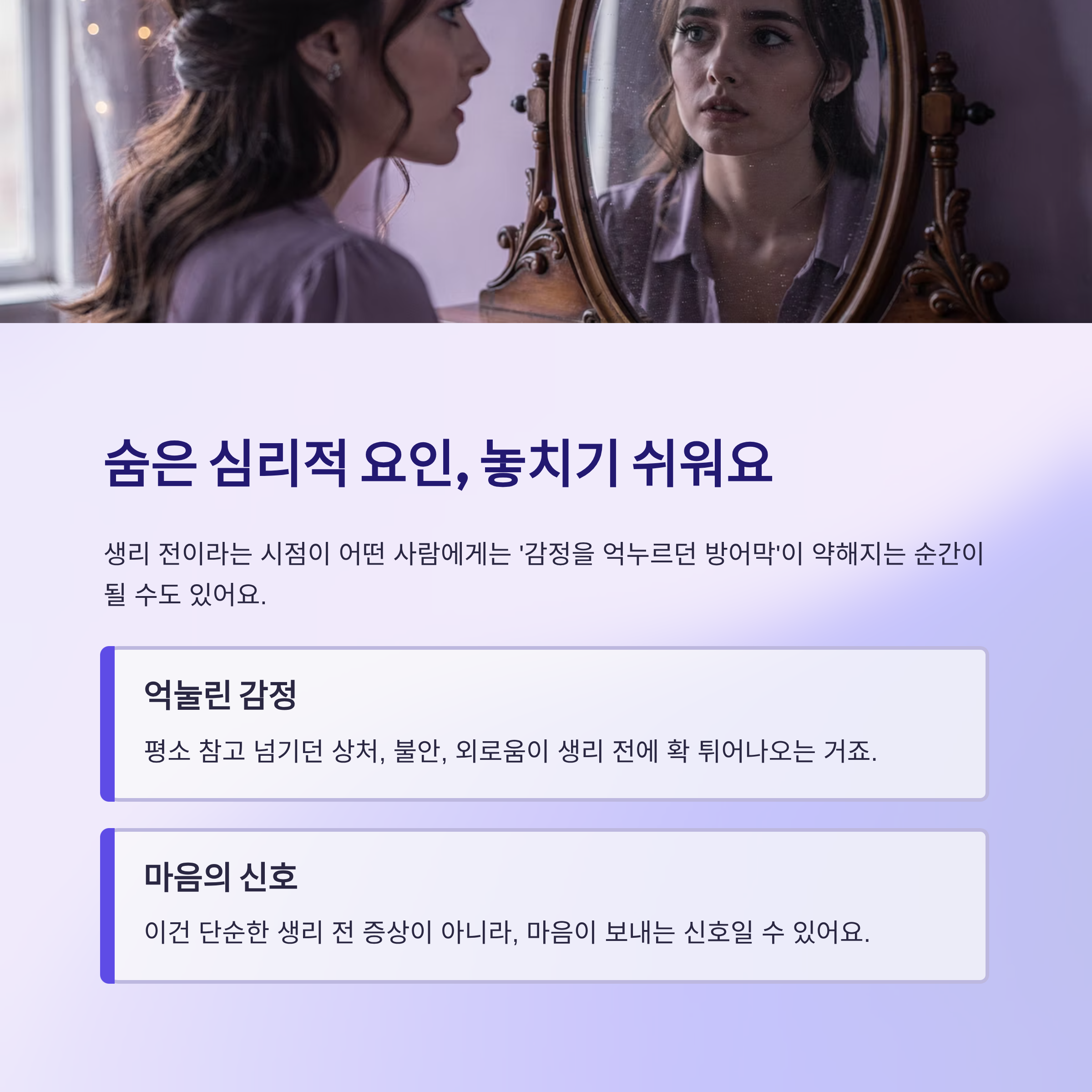 이건 단순한 생리 전 증상이라기보다, 마음이 보내는 신호일 수도 있어요.