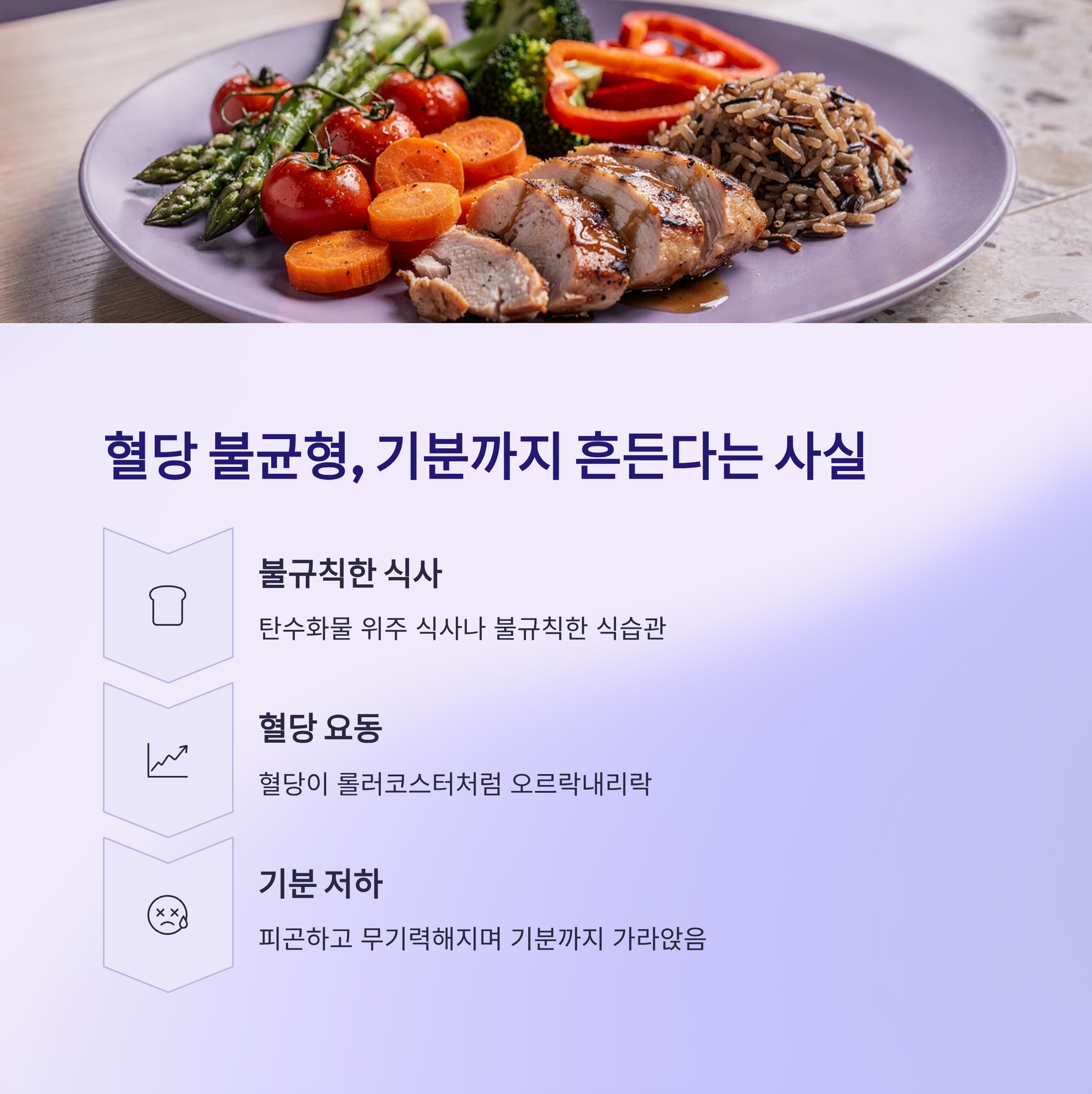 탄수화물 위주로 식사하거나 불규칙한 식사를 반복하면 혈당이 롤러코스터처럼 요동치게 됩니다.