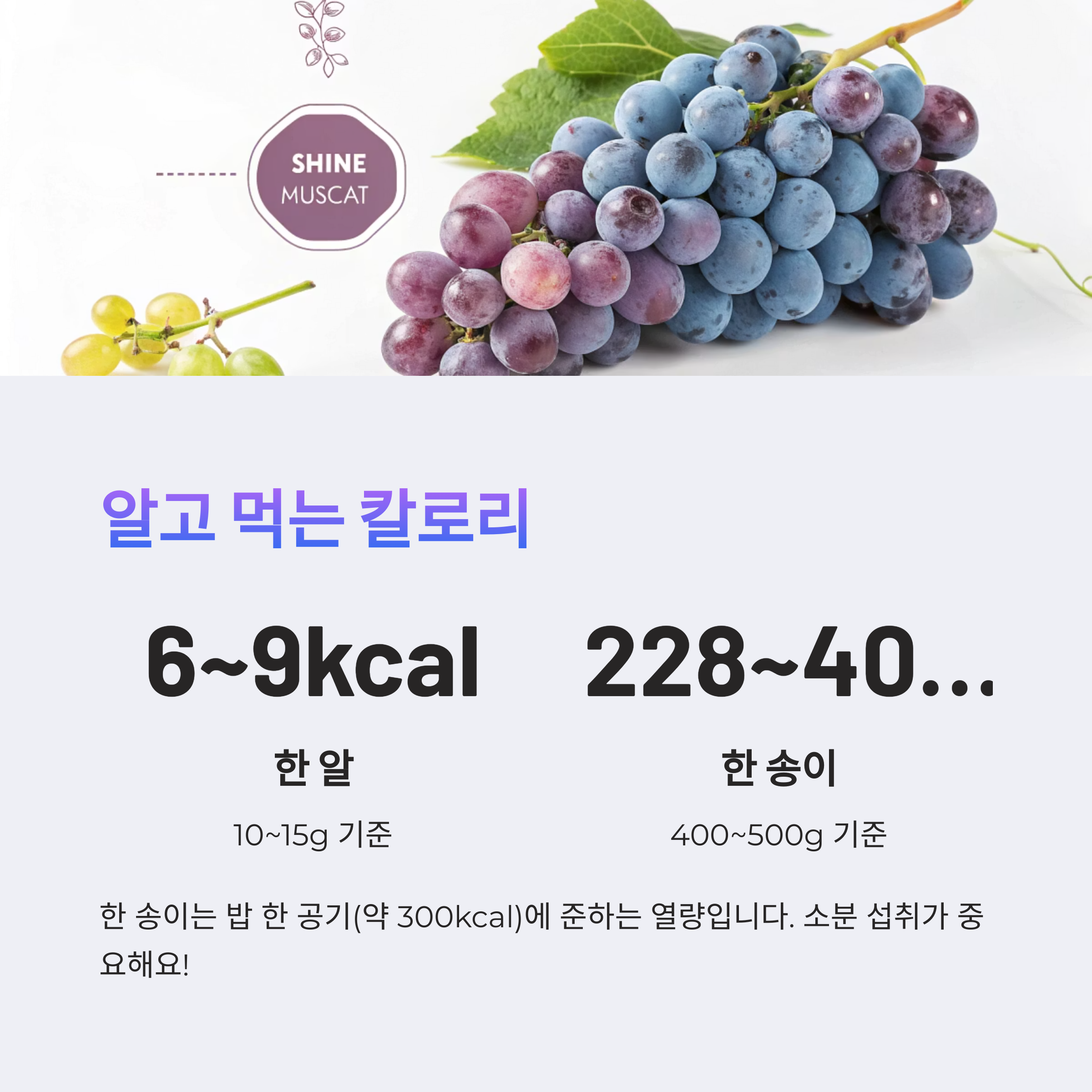 샤인머스켓은 크기에 따라 한 알, 한 송이 단위로 칼로리를 계산할 수 있습니다.