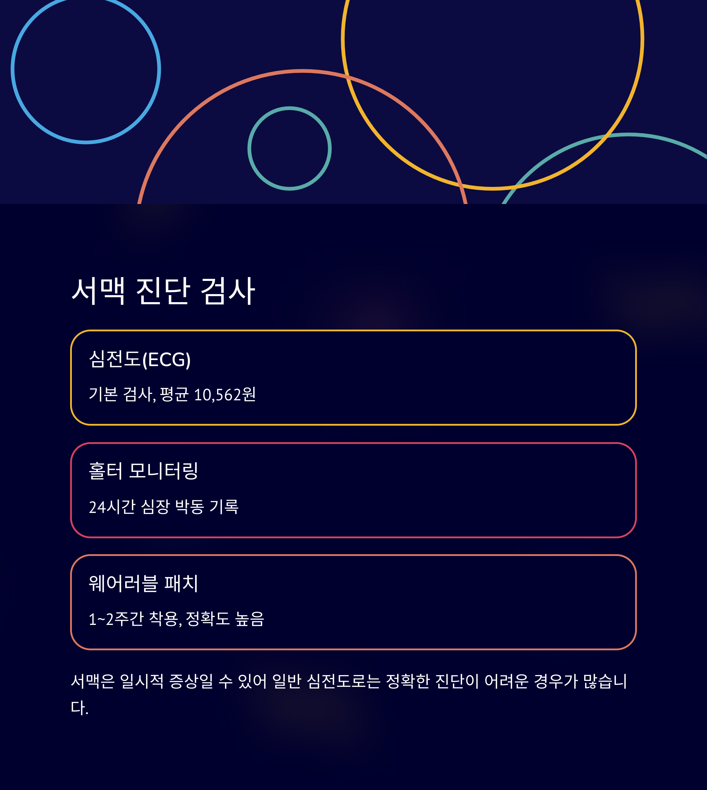 | 심전도(ECG) | 기본 검사, 빠르고 저렴함 (평균 10,562원) |