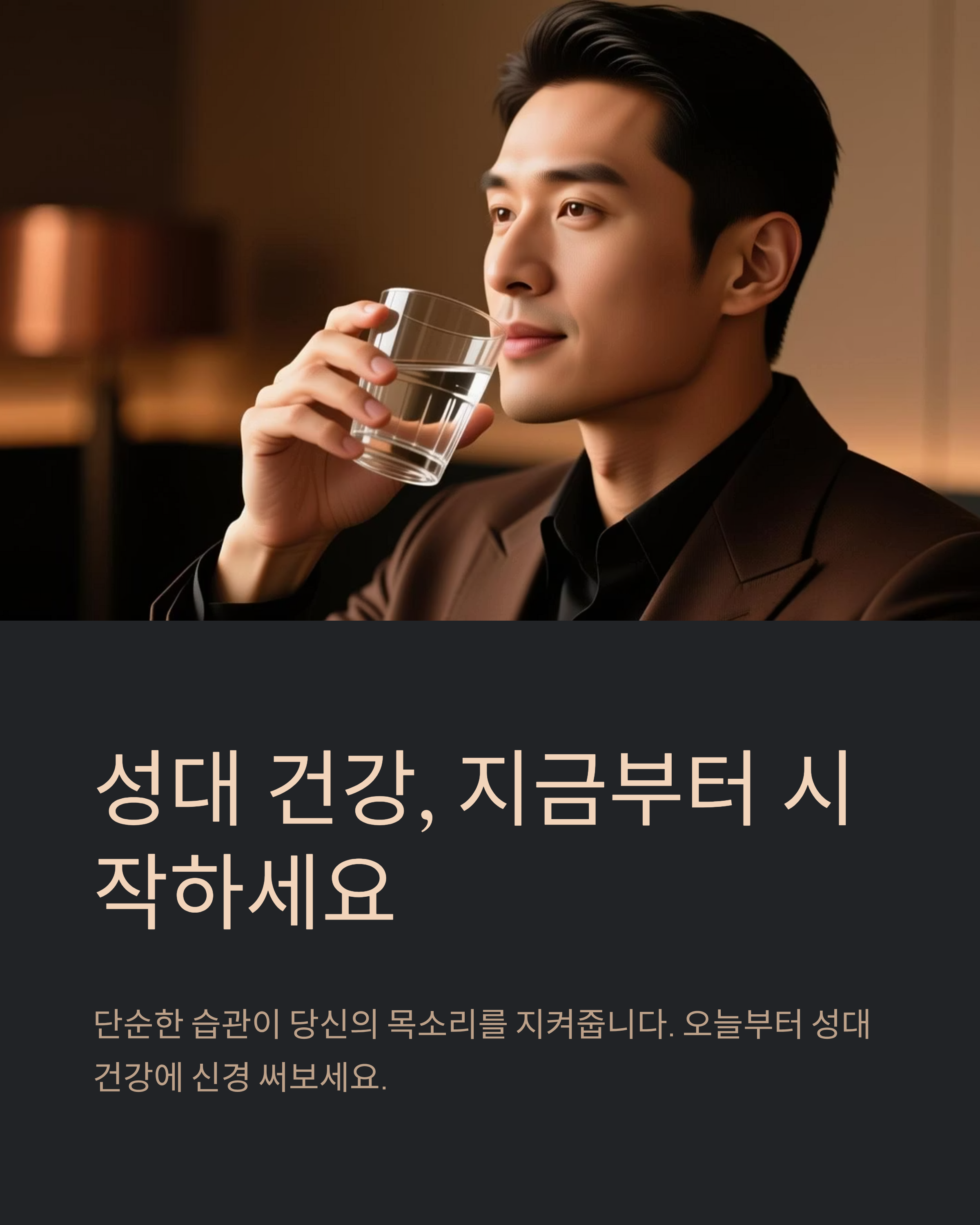매일 조금씩 신경 쓰는 습관이 결국 성대를 지켜줍니다. 물 자주 마시기, 무리한 고음 피하기, 필요한 경우 목소리 휴식 주기. 이 단순한 세 가지 습관만으로도 성대 건강을 크게 지킬 수 있습니다.