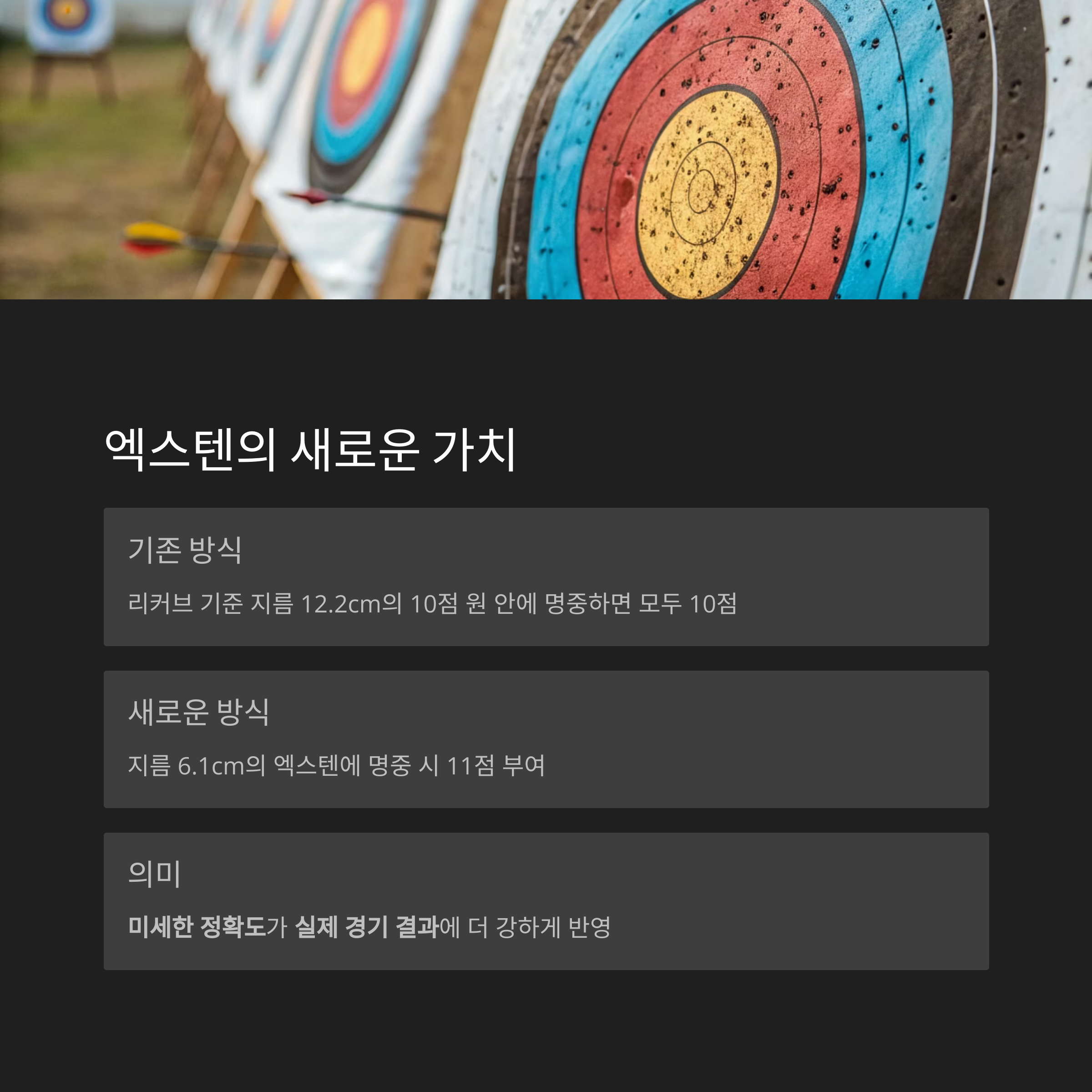 세계 양궁의 새로운 도전, ‘엑스텐 11점제’ 시범 도입의 의미