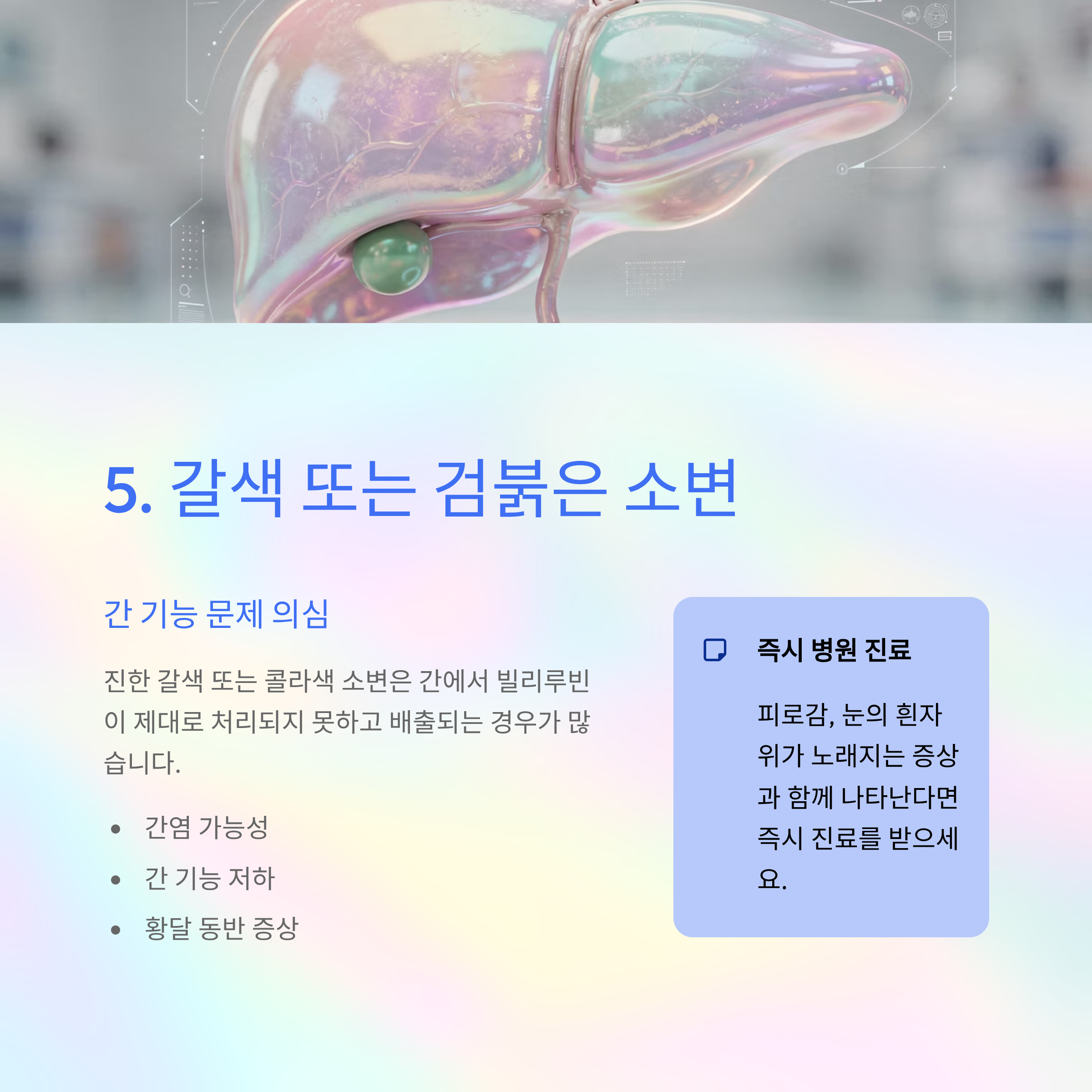 5. 갈색 또는 검붉은 소변, 간 기능 문제 의심