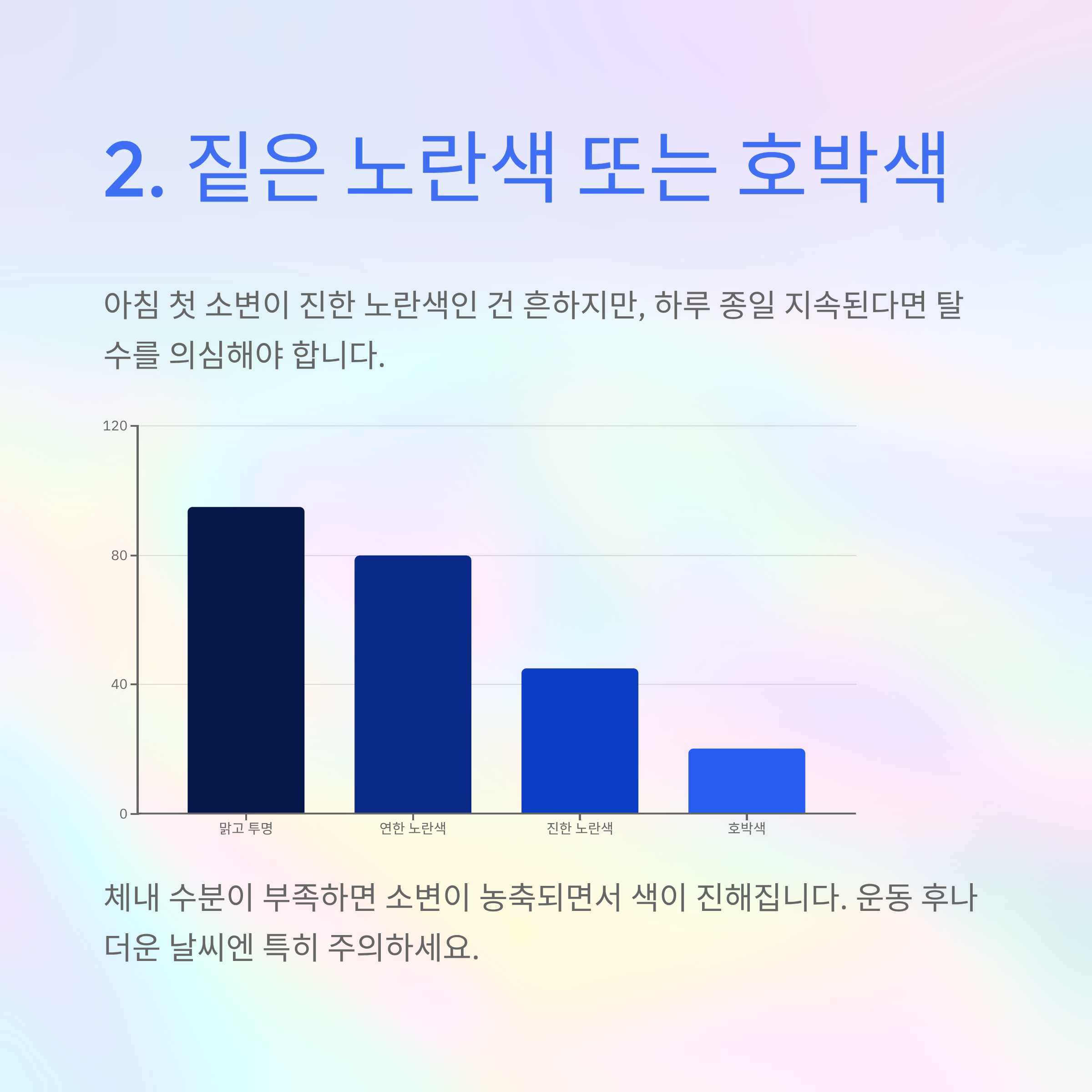 2. 짙은 노란색 또는 호박색, 탈수 상태 경고