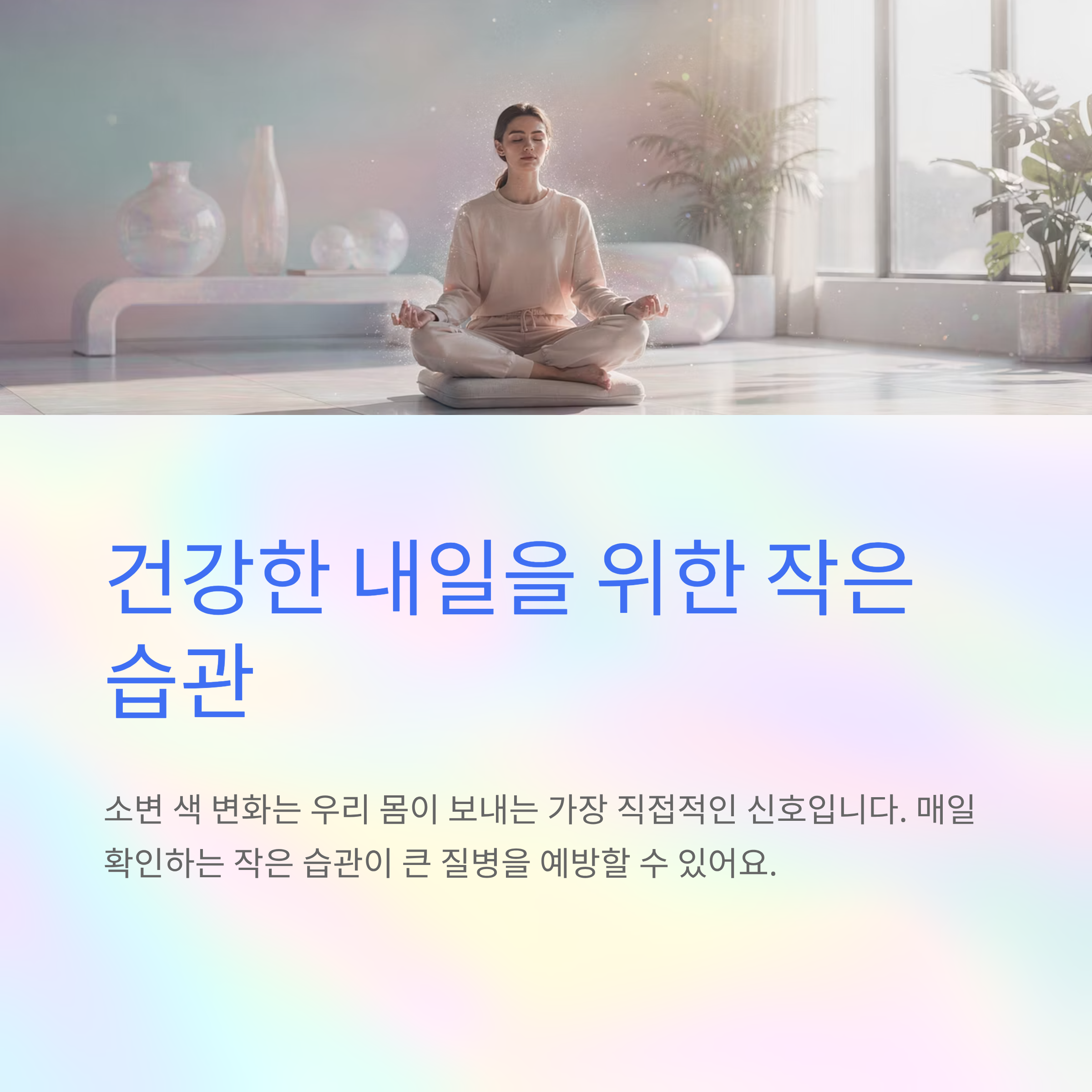 눈으로 확인 가능한 건강 신호, 바로 소변입니다. 오늘부터라도 색과 냄새를 잘 살펴보세요. 작은 변화가 큰 예방이 될 수 있습니다.