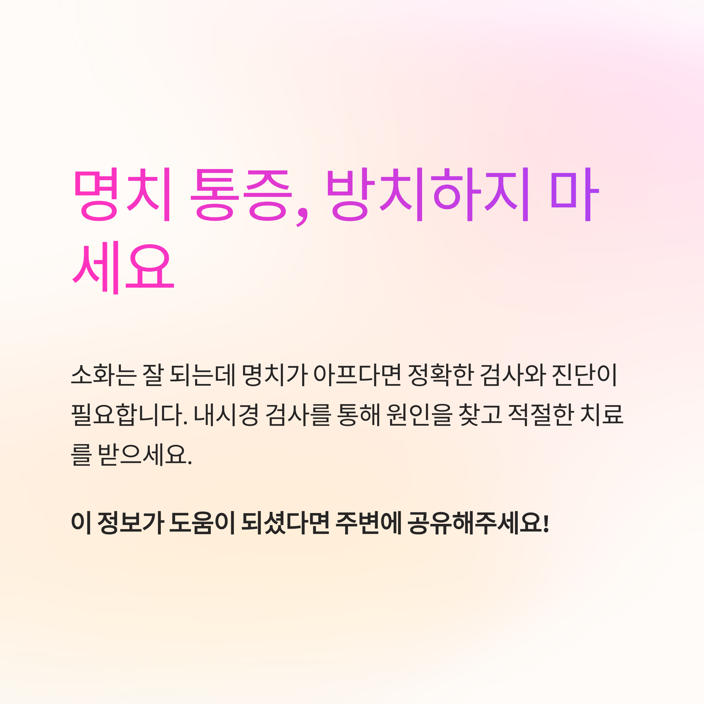 소화가 잘 되는 것 같아도 명치 부위에 통증이 반복된다면, 단순한 소화 문제가 아닐 수 있습니다. 많은 분들이 이 증상을 단순 위장 장애로 넘기지만, 실제로는 다양한 원인과 관련될 수 있어 주의가 필요해요. 오늘은 소화는 되지만 명치가 아픈 이유와 함께 내시경 검사 전 반드시 확인해야 할 핵심 체크포인트들을 정리해 드릴게요.