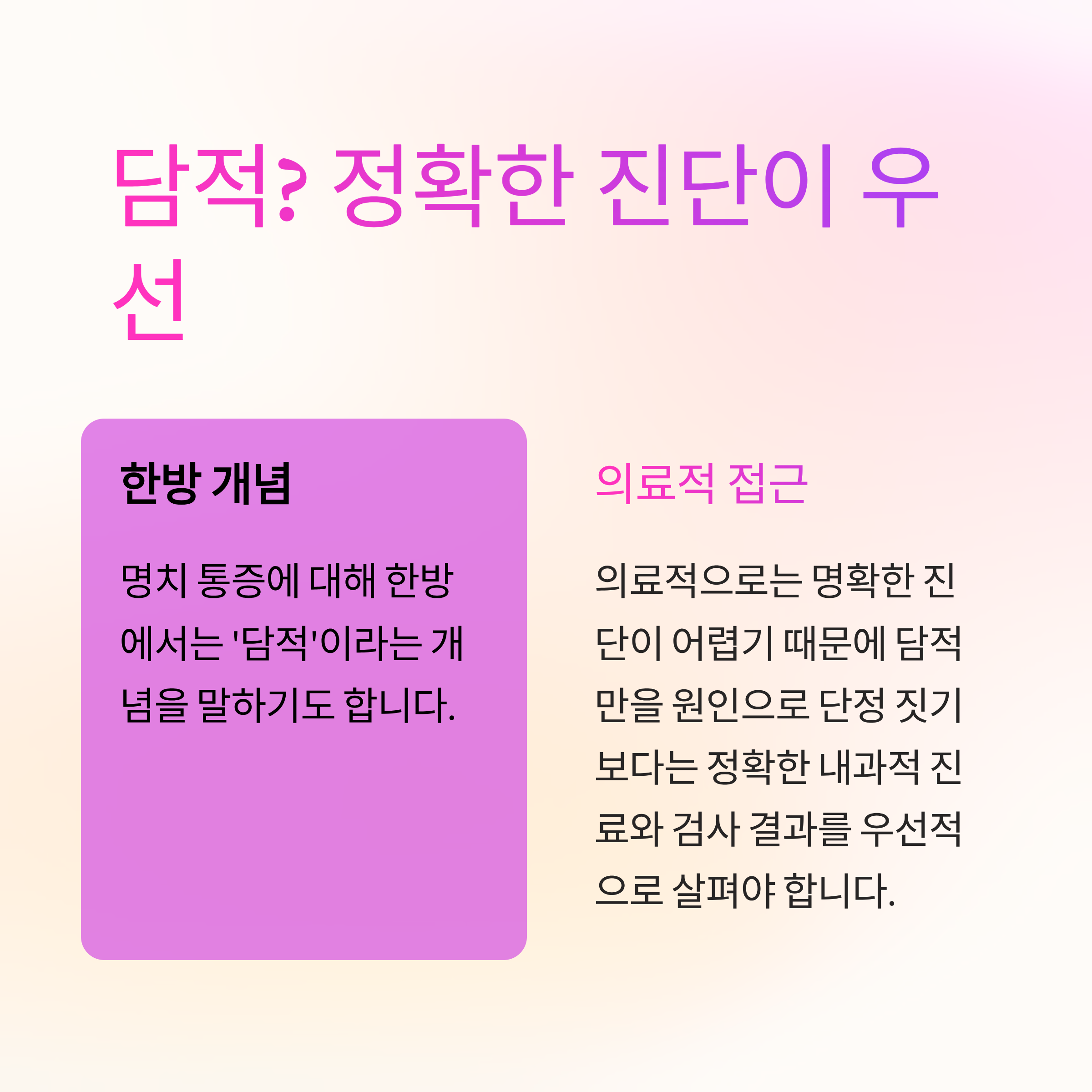 하지만 의료적으로는 명확한 진단이 어렵기 때문에, 담적만을 원인으로 단정 짓기보다는 정확한 내과적 진료와 검사 결과를 우선적으로 살펴야 합니다.