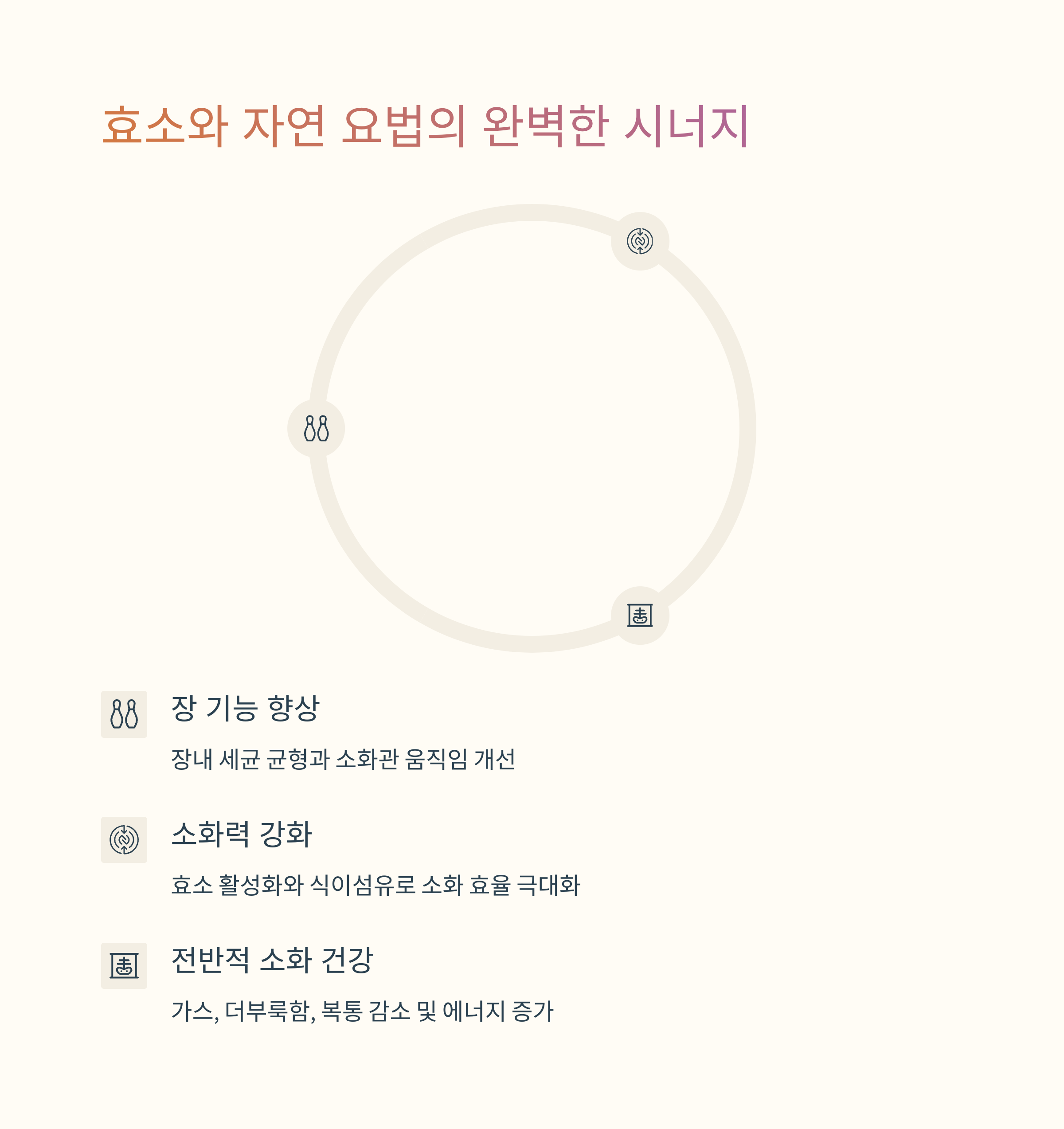 소화 건강은 단기간에 개선되는 것이 아니라, 일상 속 실천과 꾸준한 관리가 필요합니다. 효소 보충제는 이런 여정에서 강력한 도우미가 될 수 있지만, 그보다 중요한 것은 우리가 매일 선택하는 식습관과 생활 태도입니다. 천천히 음식을 씹고, 발효 식품을 적절히 섭취하며, 운동과 스트레스 관리에 힘쓰는 것. 이러한 기본적인 원칙이 쌓일 때 진정한 소화 건강이 만들어집니다. 몸의 신호에 귀를 기울이고, 자연과 조화를 이루는 생활을 통해 건강한 소화력을 만들어 보세요.