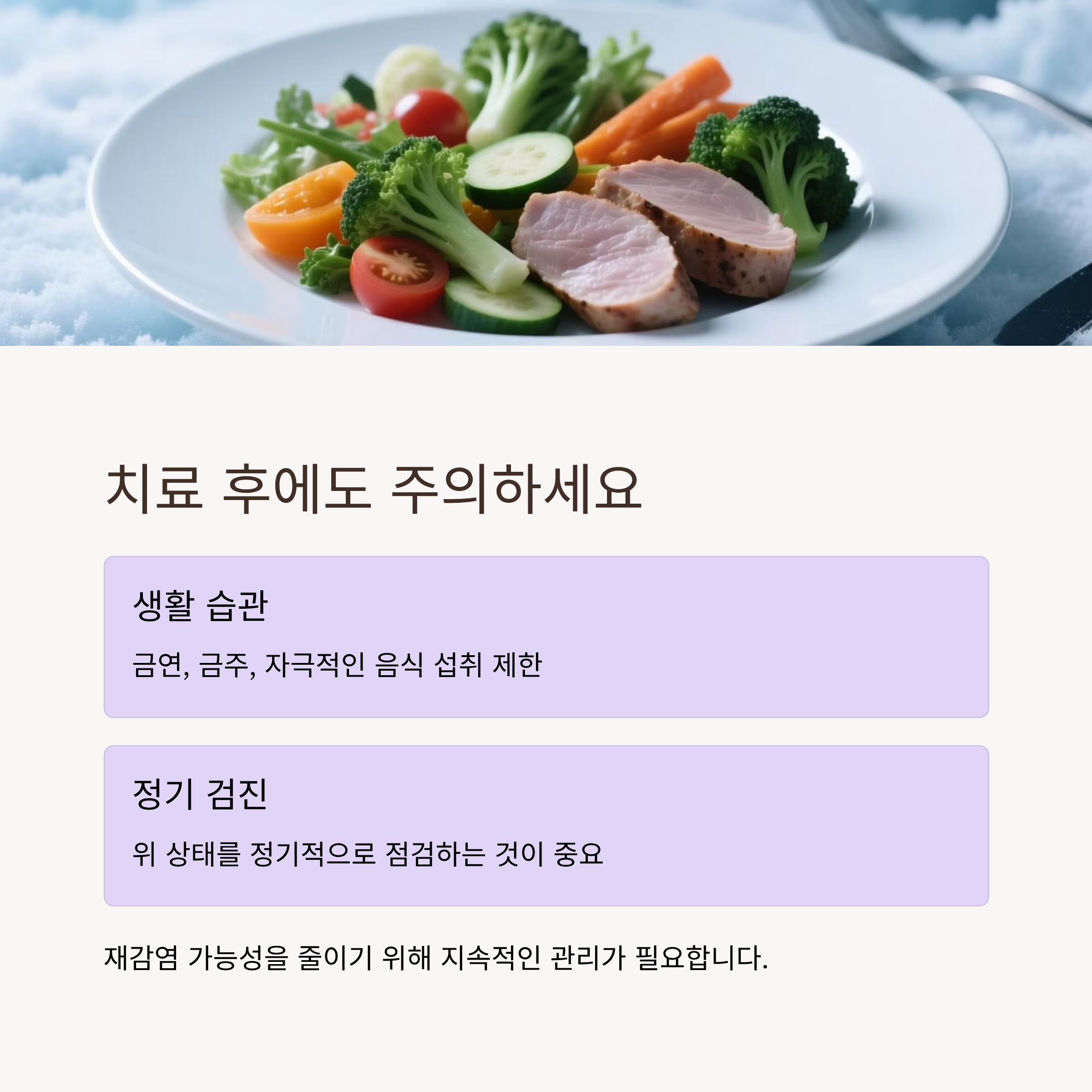 치료가 끝난 뒤에도 위 건강을 지키는 습관이 중요합니다.