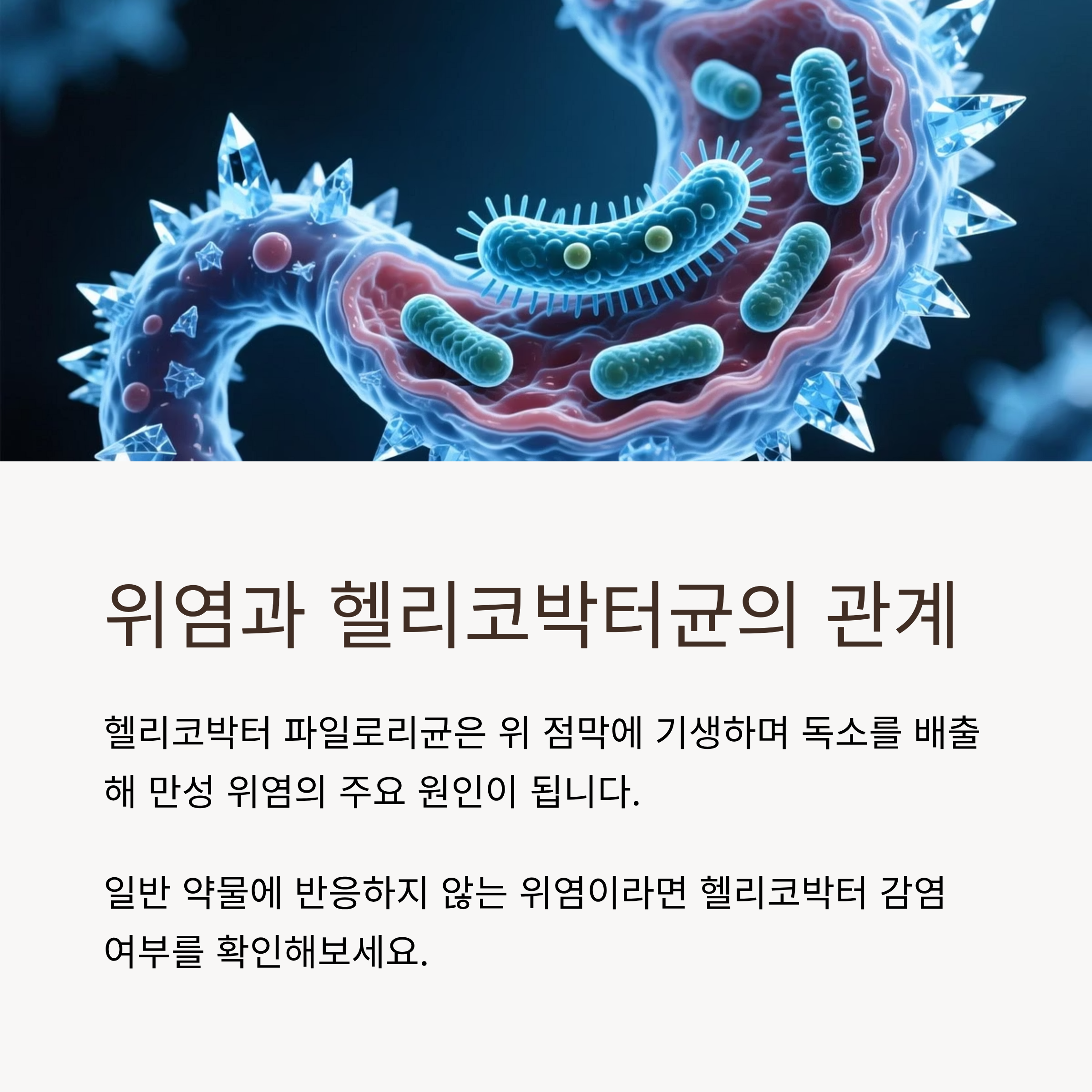 이 균은 위 안에서 생존하며 위점막을 자극하고, 장기적으로는 위염, 위궤양, 심지어 위암으로 이어질 수 있어 조기 진단과 치료가 중요합니다.