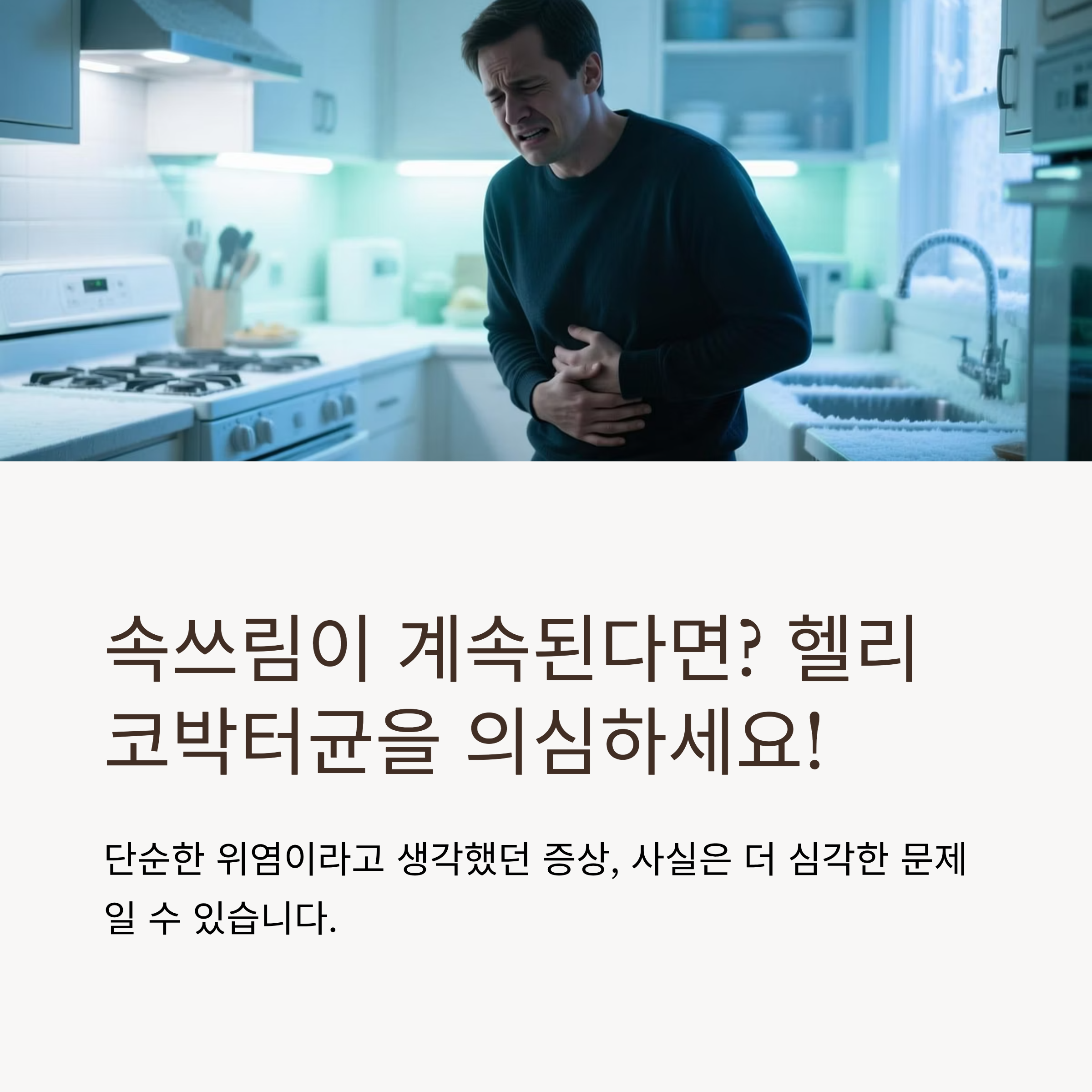 평소와 다름없는 속쓰림과 소화 불량 증상이라 단순한 위염으로만 생각하셨다면, 헬리코박터균 감염일 수 있습니다.