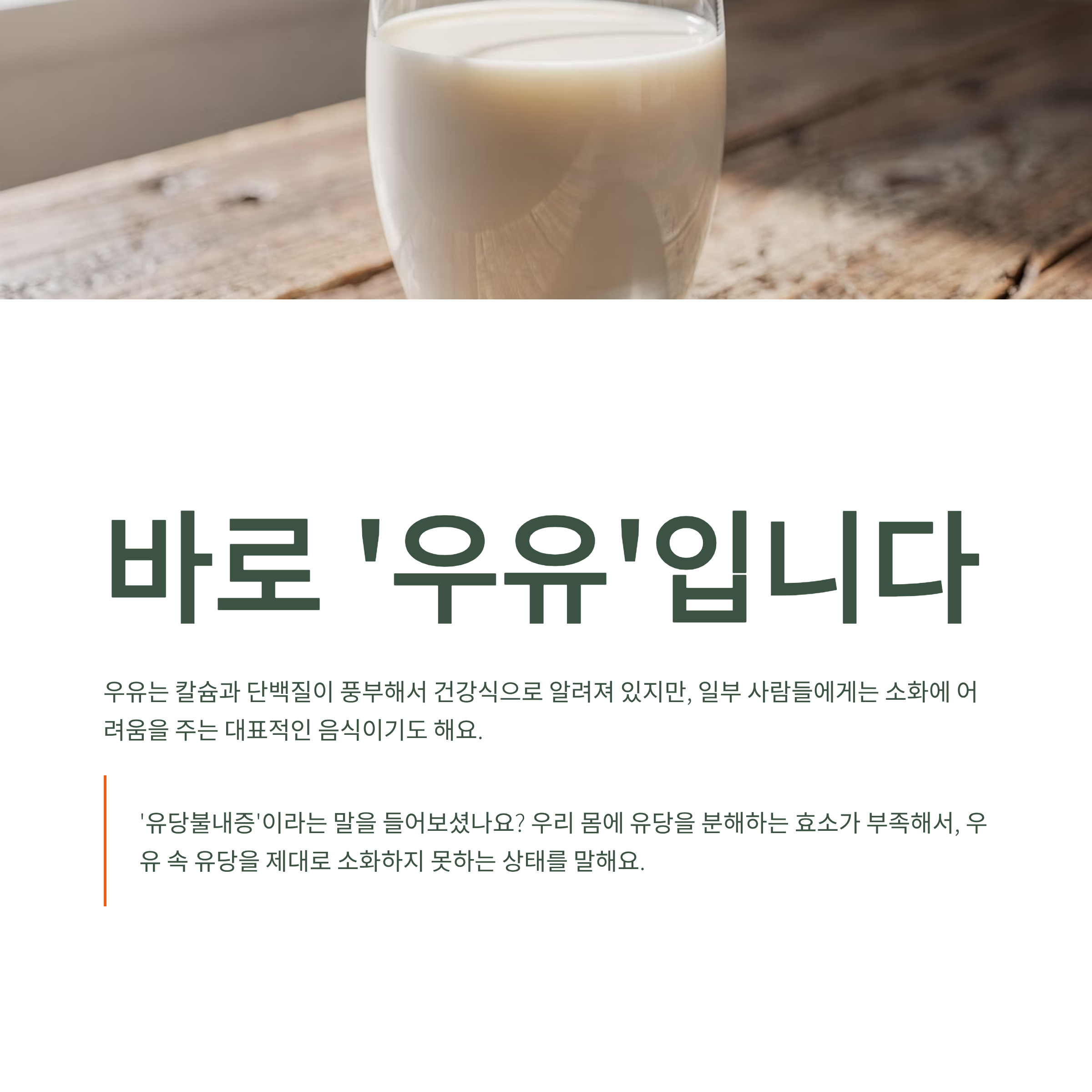 | 우유 섭취 후 소화 | 불편함, 가스참 | 문제 없음 |