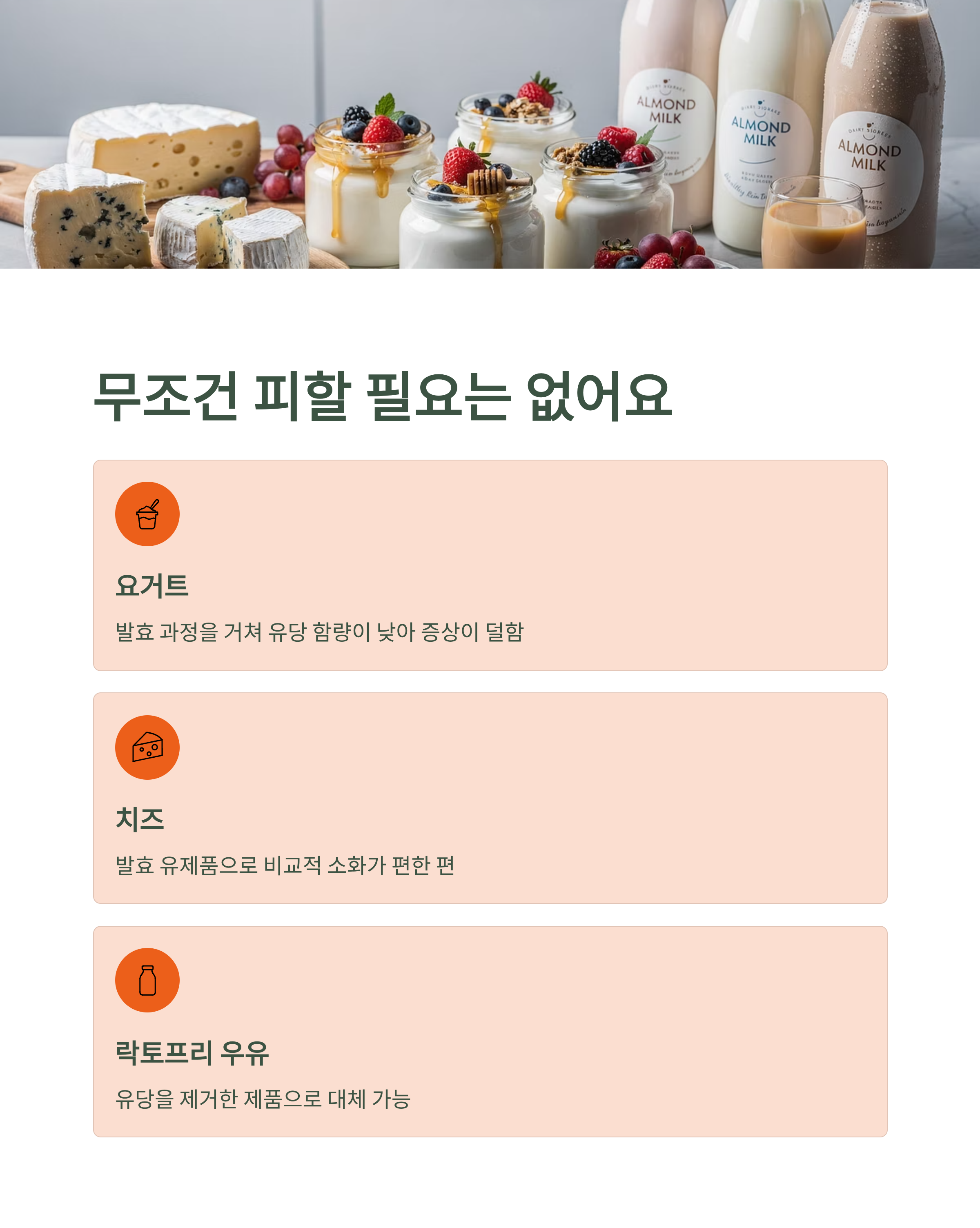 또한 '락토프리 우유'처럼 유당을 제거한 제품도 많이 나와 있으니 활용해 보셔도 좋아요.