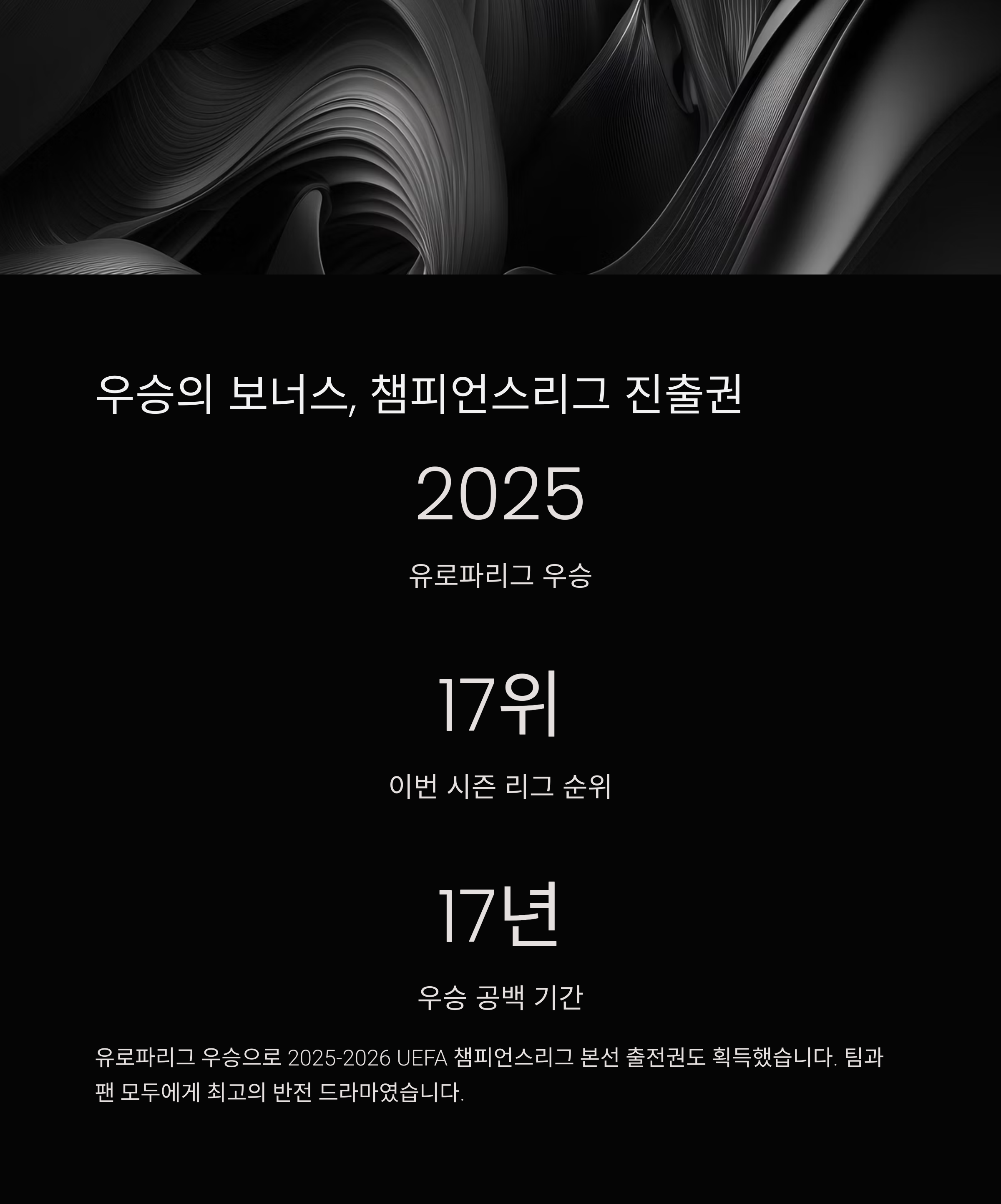 2025-2026 UEFA 챔피언스리그 본선 출전권도 획득했습니다.