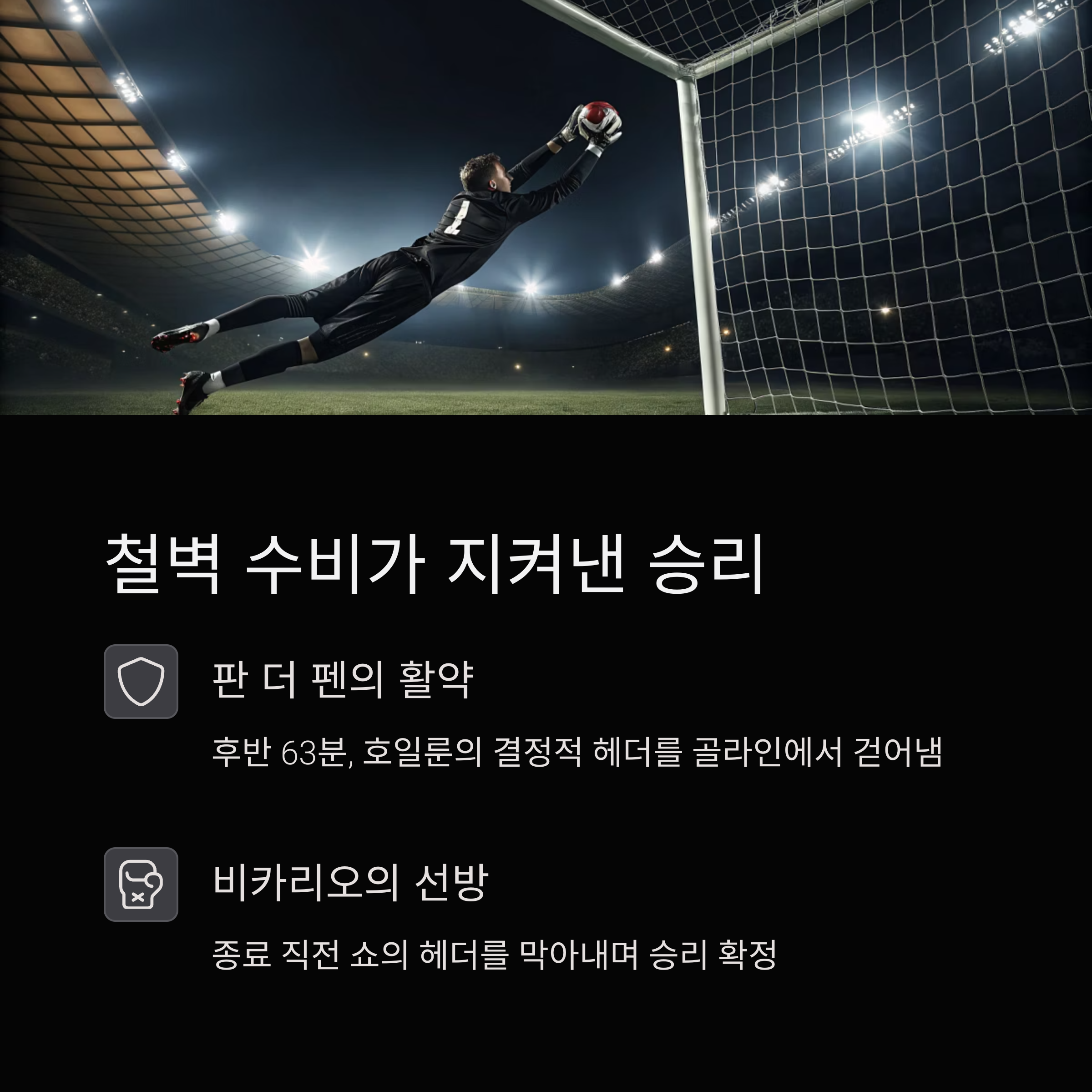 이 한 골을 끝까지 지키며 극적인 승리를 완성했습니다.