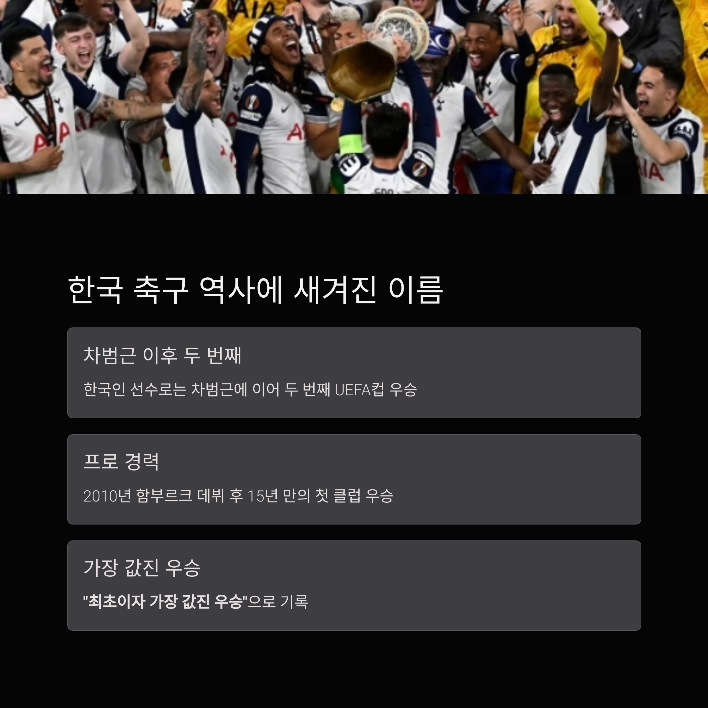 | 첫 우승 트로피 | 2025 유로파리그 (토트넘) |