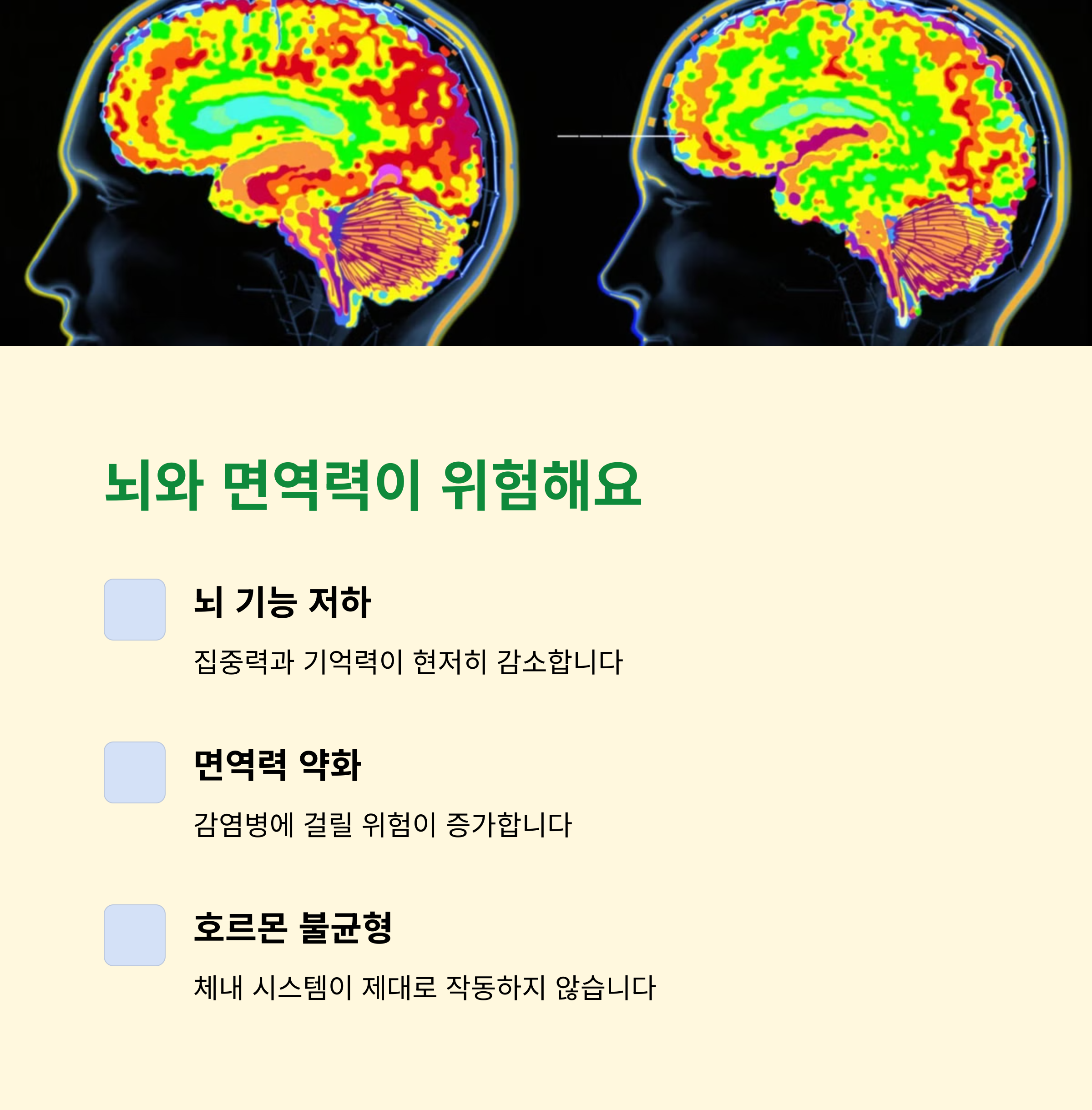 | 뇌 기능 저하 | 면역력 약화 | 체중 증가 |