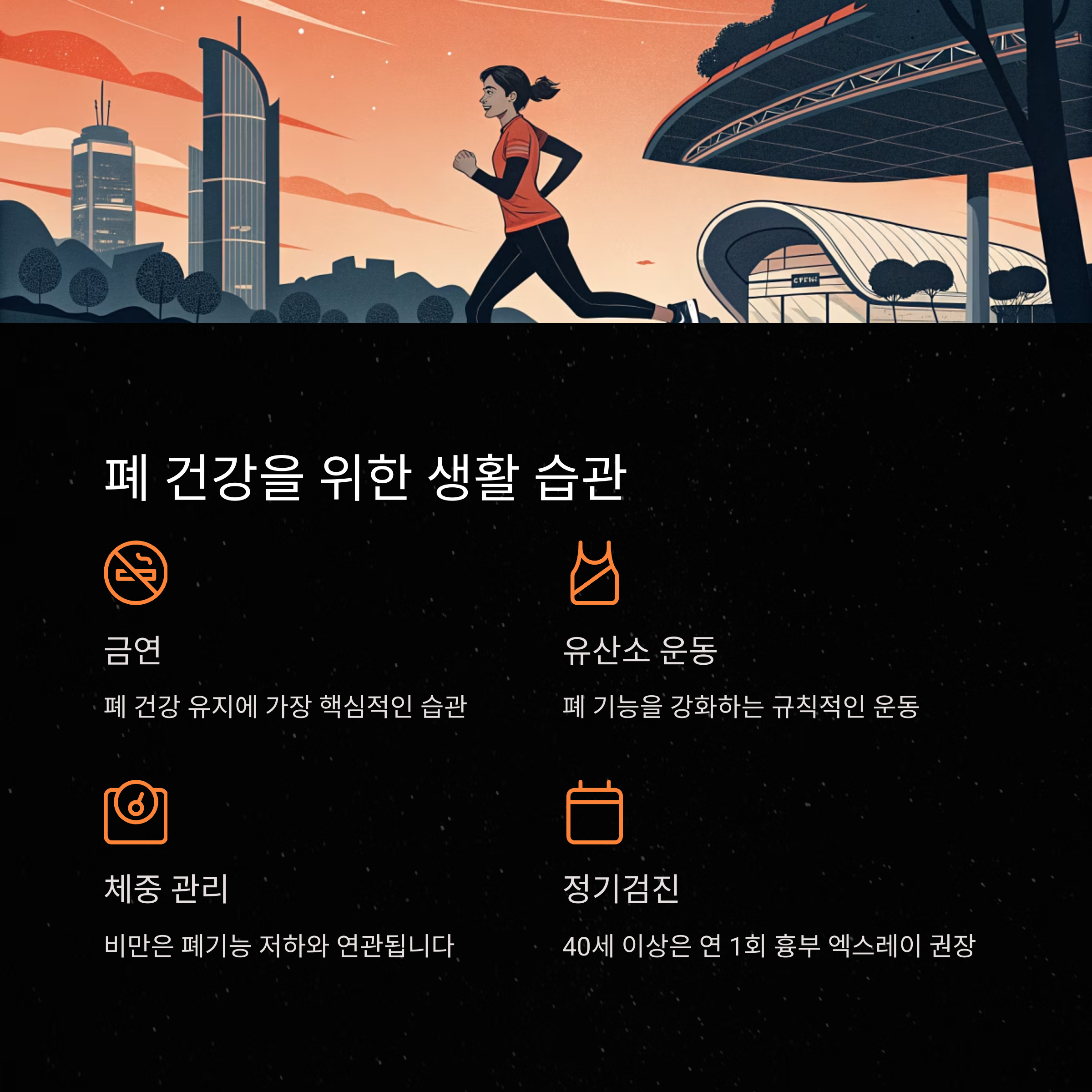 • 금연: 폐 건강 유지에 가장 핵심적인 습관