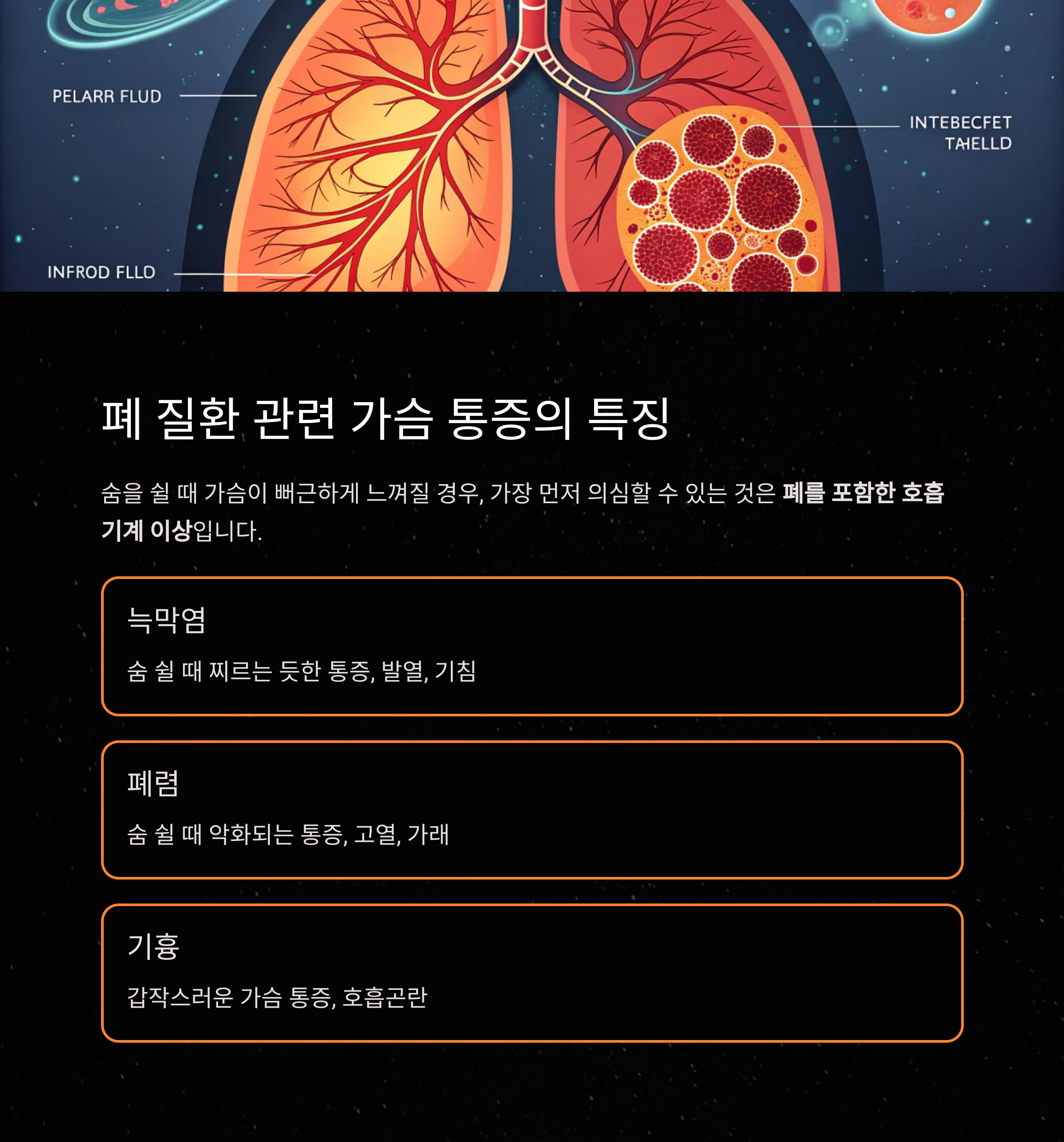 특히 호흡과 밀접하게 연관된 통증은 폐 질환의 가능성이 높습니다