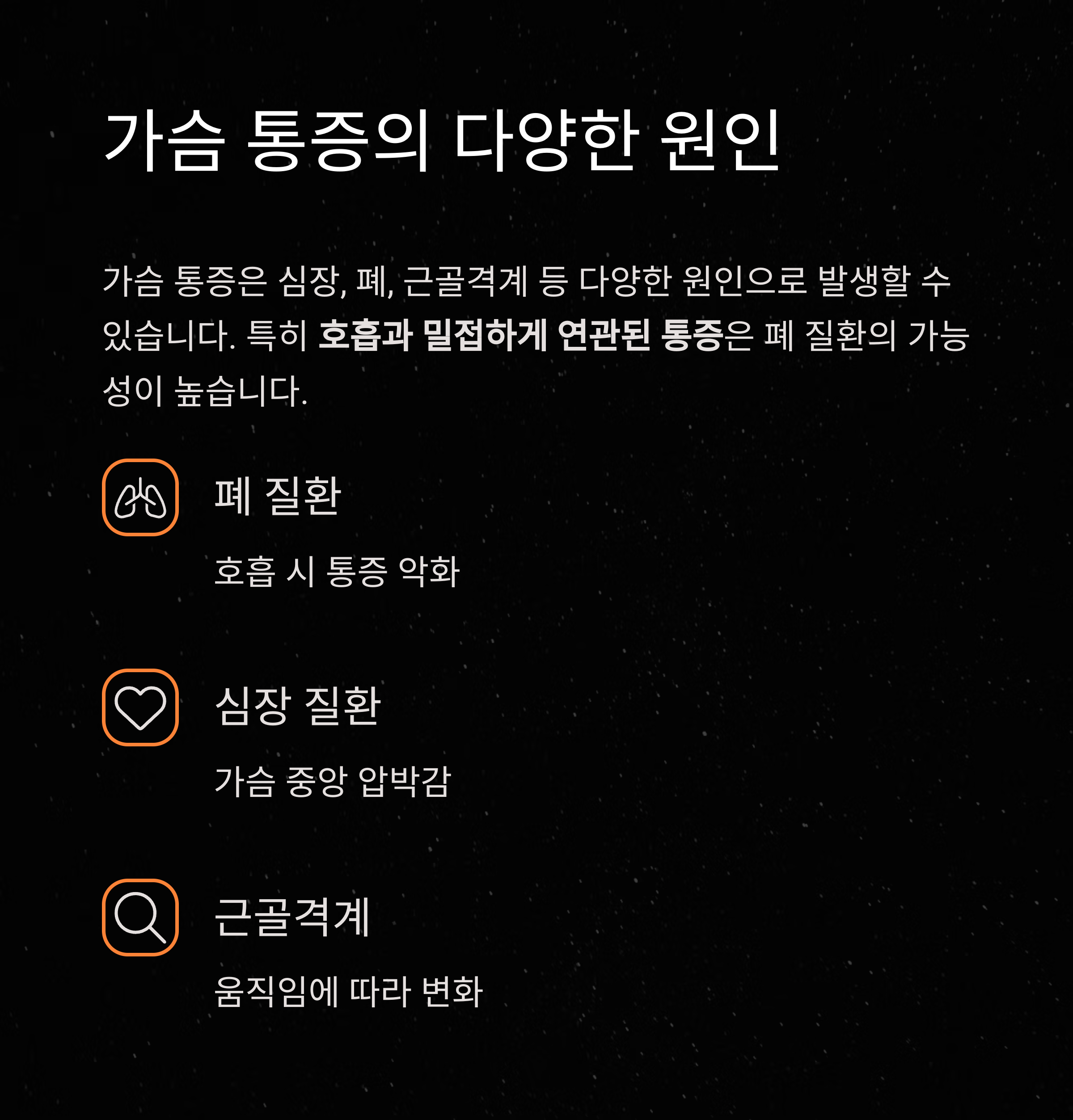 가슴 통증은 심장, 폐, 근골격계 등 다양한 원인으로 발생할 수 있습니다