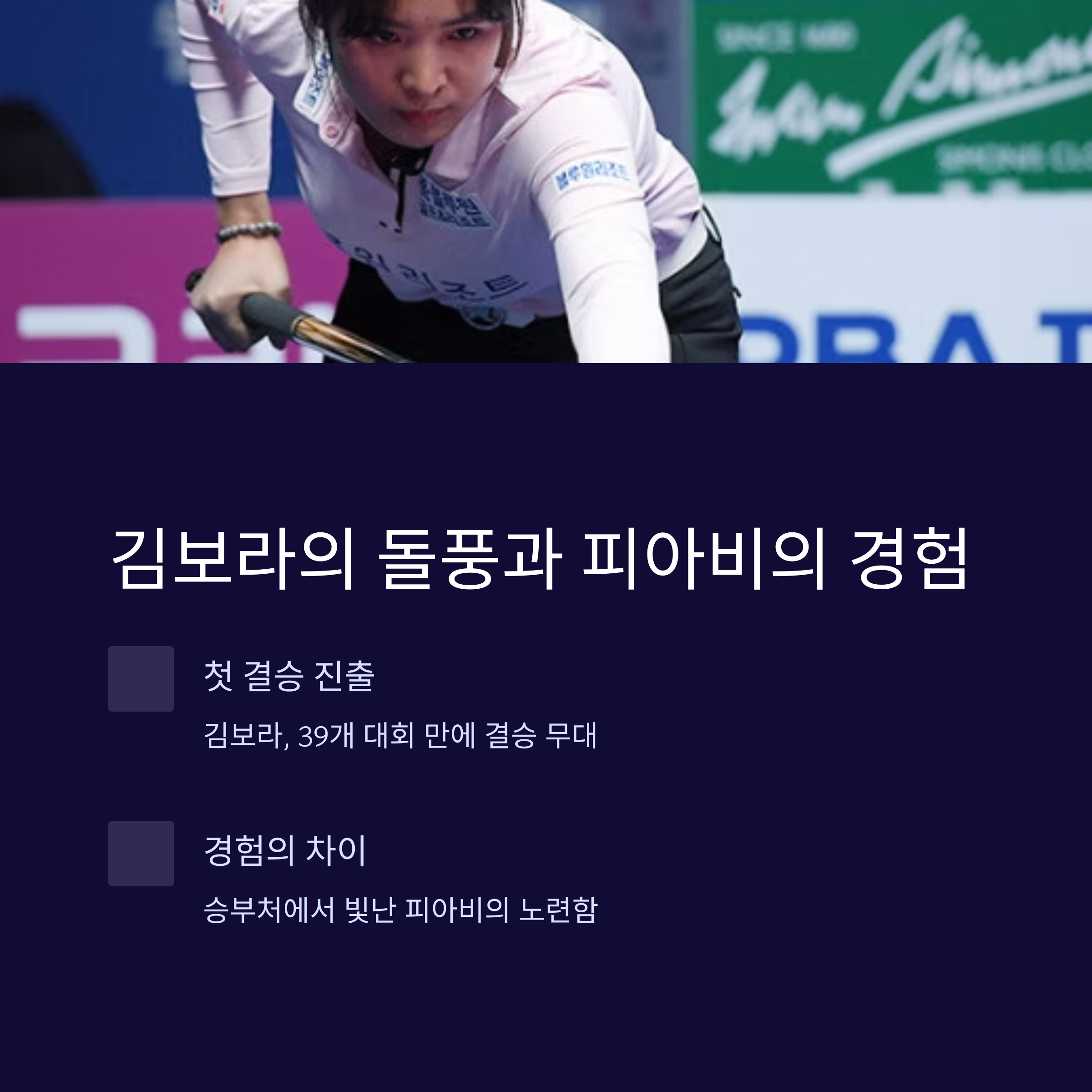 | 당구 여제 김가영, 차유람 제압하며 LPBA 8연속 우승 달성! (0) | 2025.06.23 |