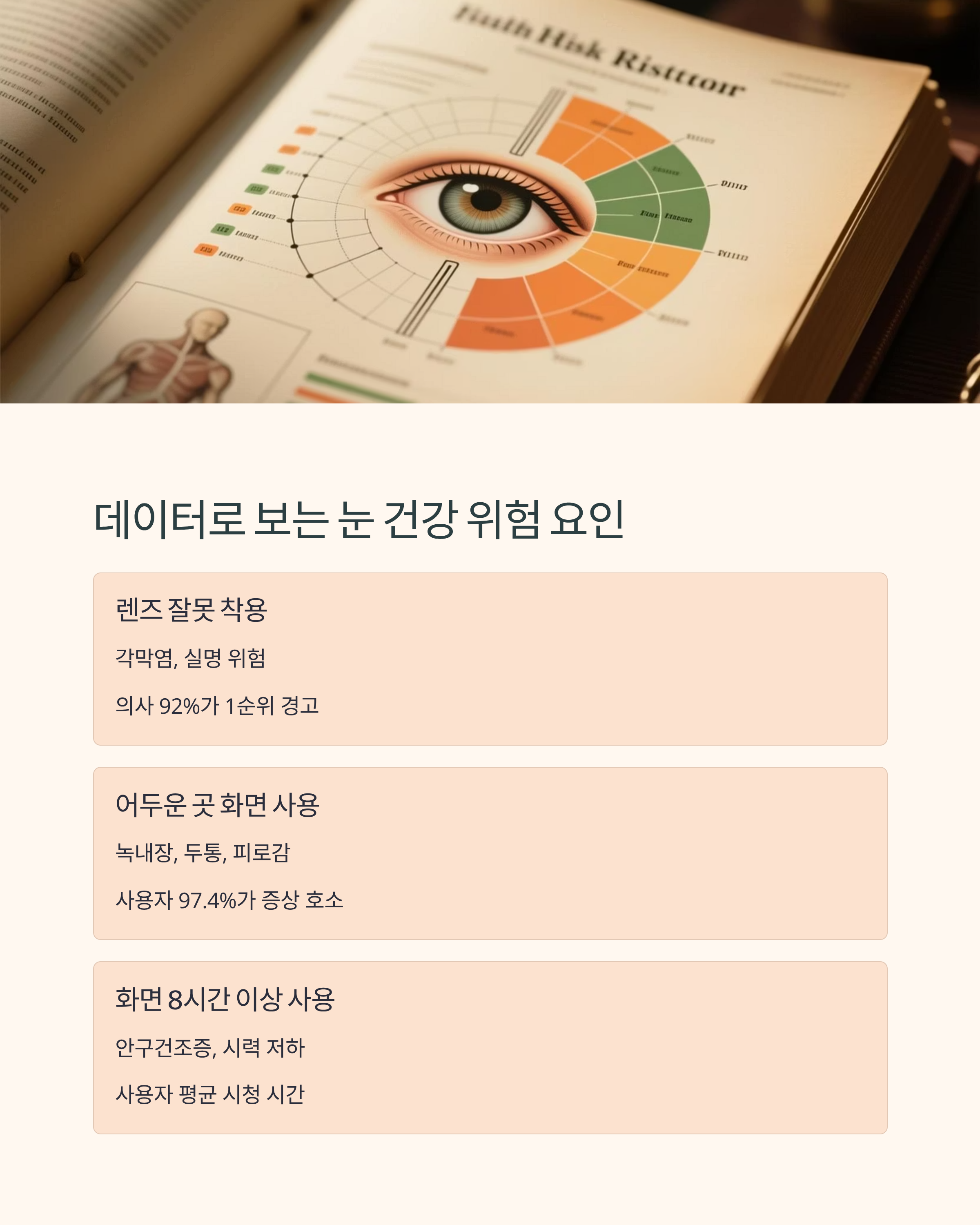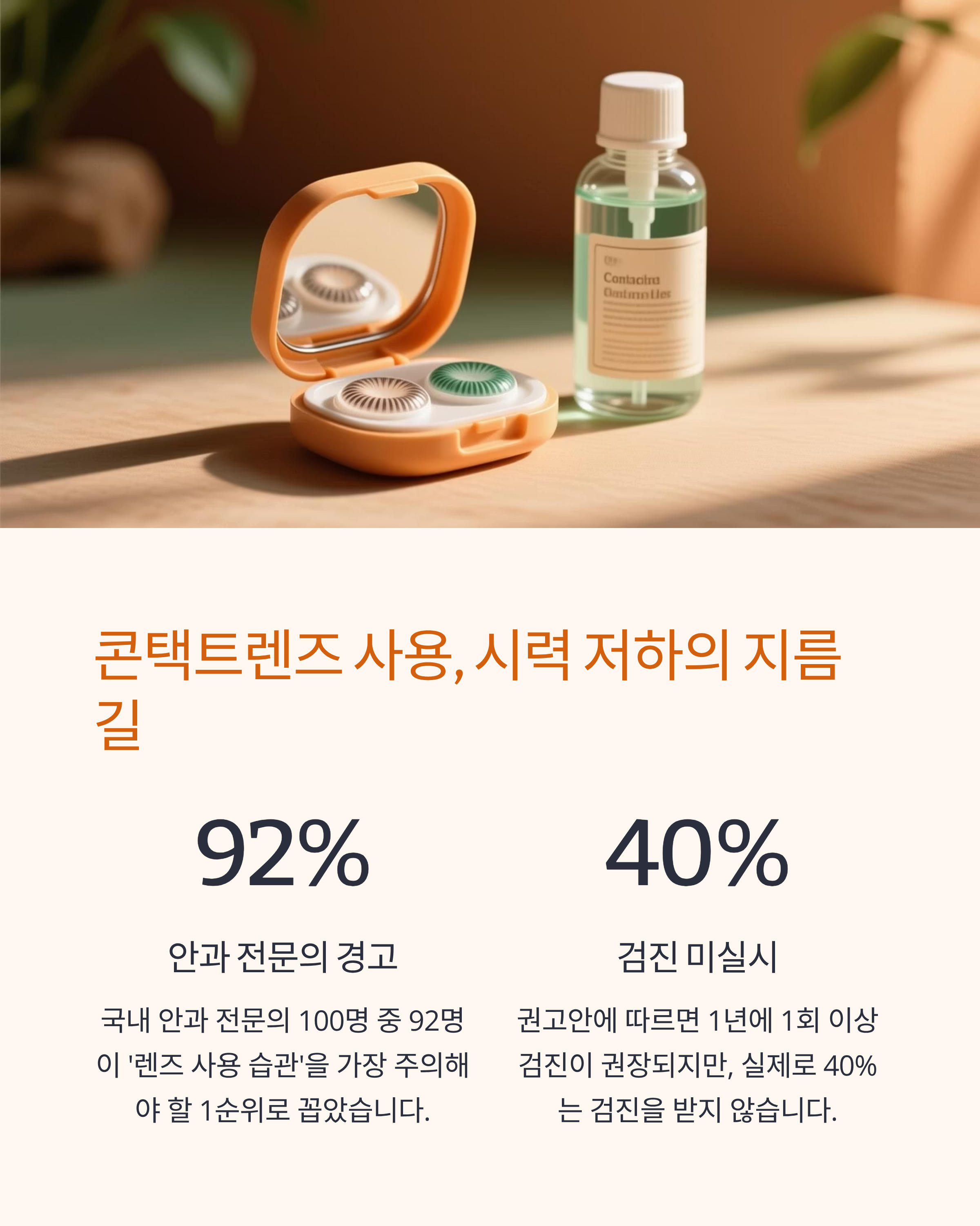 | 렌즈 잘못 착용 | 각막염, 실명 | 의사 92%가 1순위 경고 |