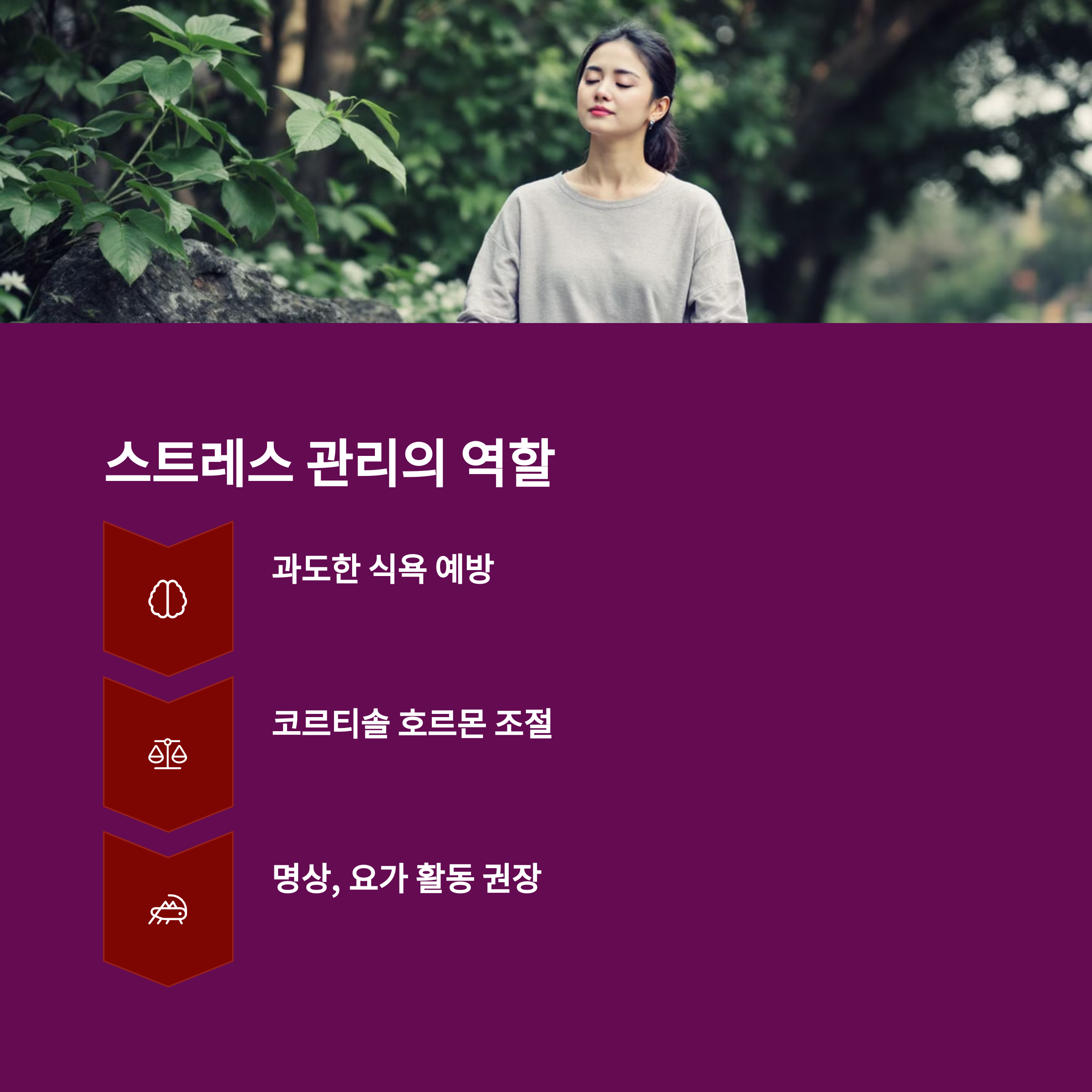 | 운동 | 수면 | 스트레스 관리 |