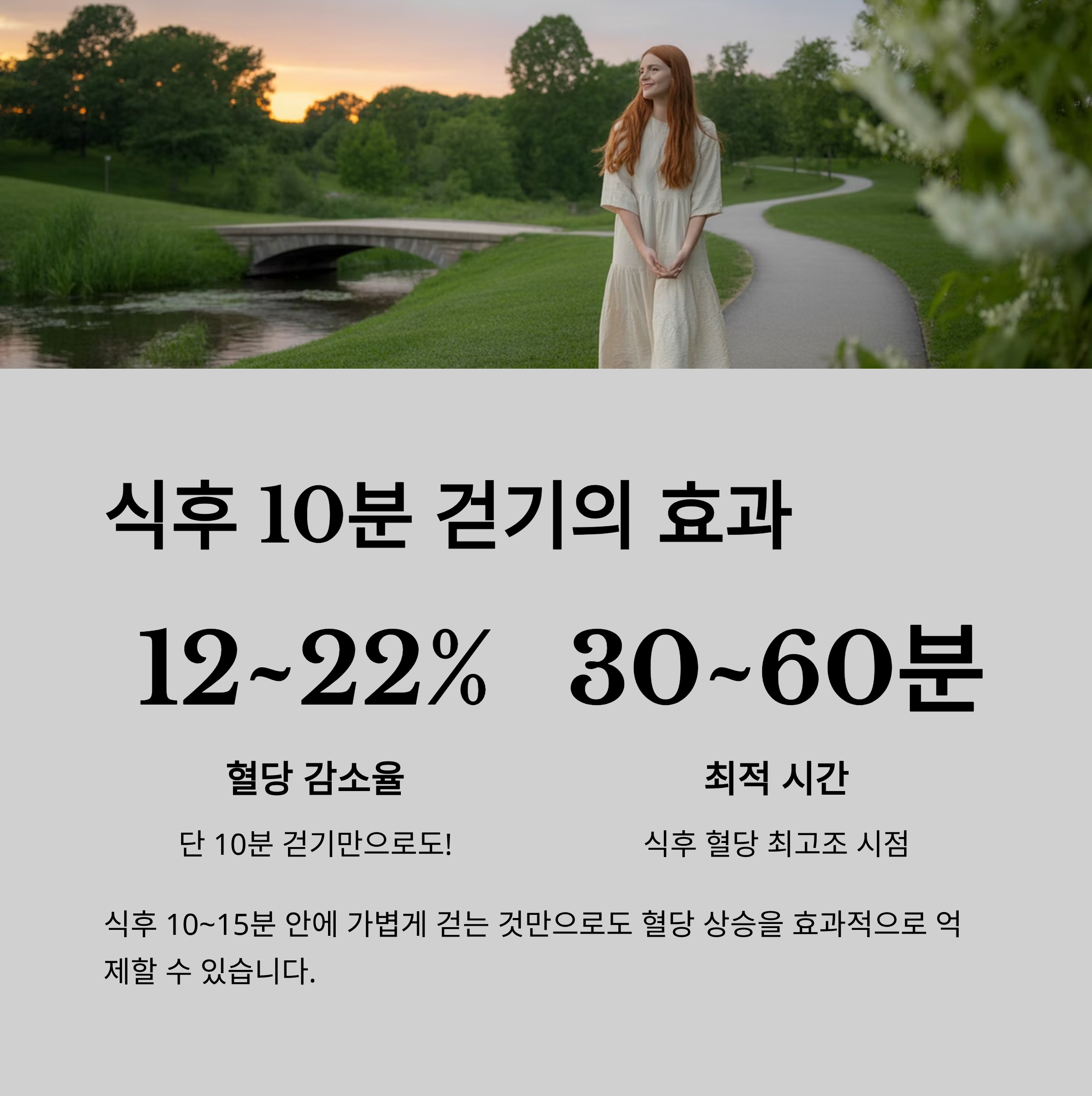 그리고 식후 10분~15분 안에 10분 정도 걷는 습관까지 실천한다면,