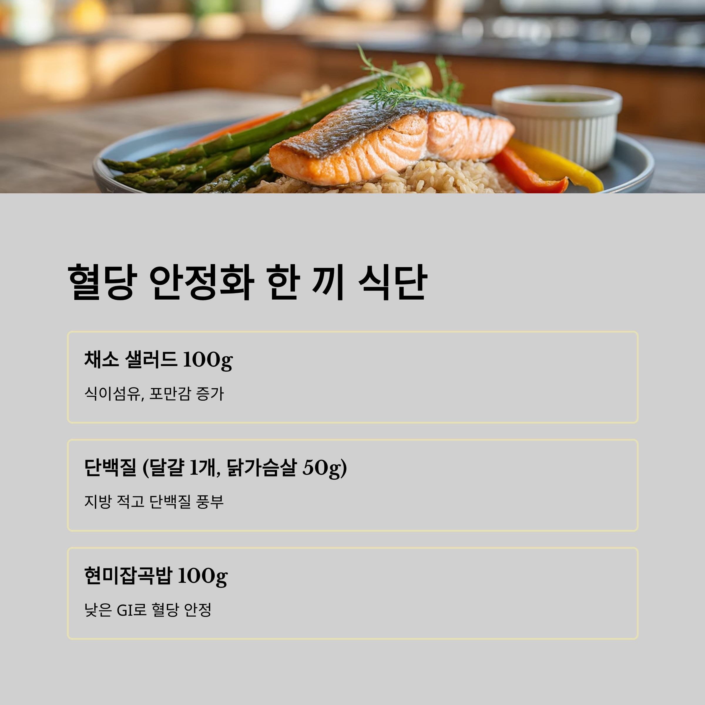 단 한 끼라도 혈당을 안정시키는 식단을 구성해보세요.
