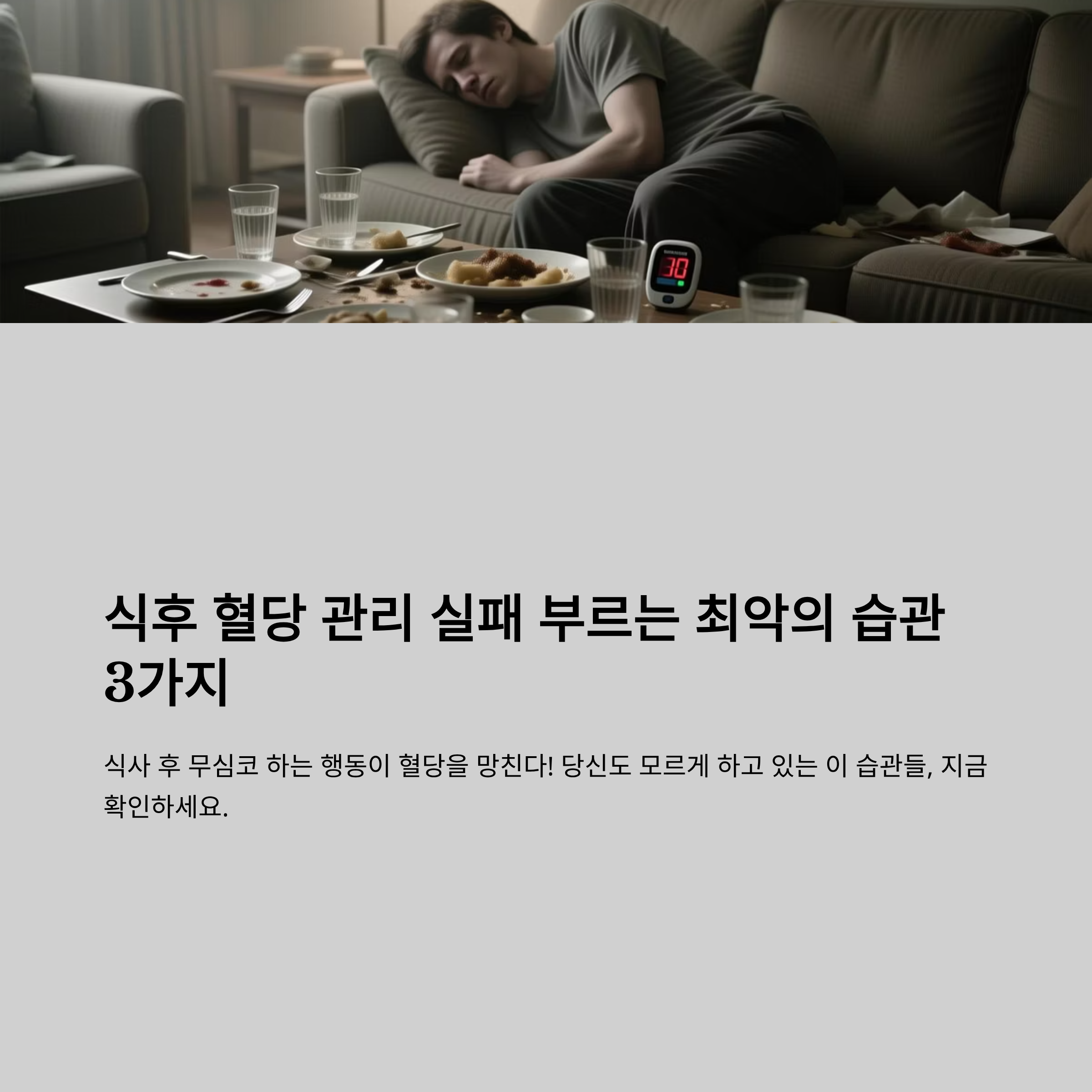 식후 혈당은 단순히 당뇨 환자만의 문제가 아니라 건강한 사람에게도 매우 중요합니다. 특히 혈당 스파이크를 반복적으로 경험하면 피로감, 체중 증가, 장기 손상까지 이어질 수 있습니다. 오늘은 식후 혈당을 안정적으로 관리하기 위해 반드시 피해야 할 대표적인 행동 3가지를 정리해드리겠습니다.