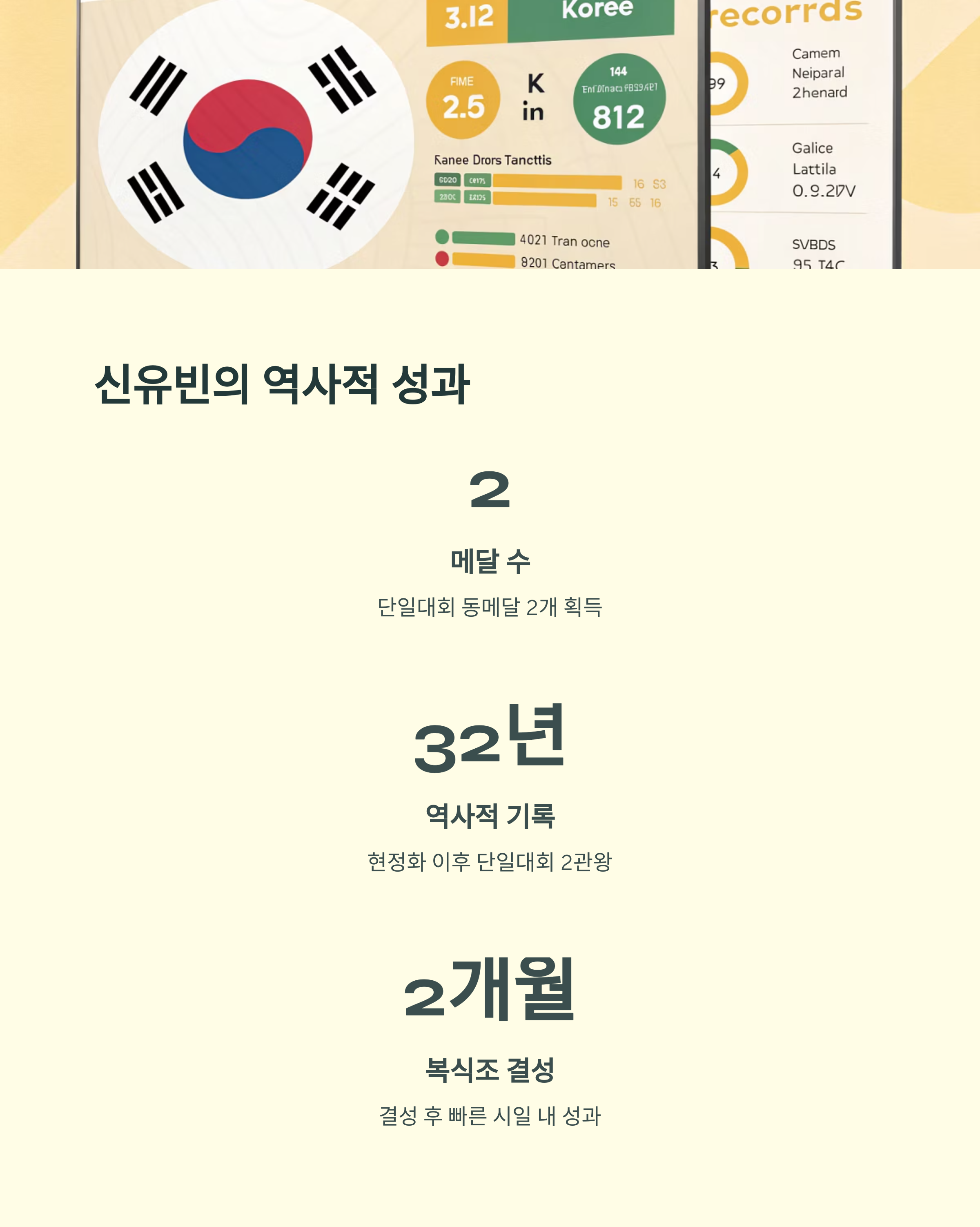 현정화 이후 32년 만에 단일대회 2개 메달을 획득한 여자선수로 기록되며