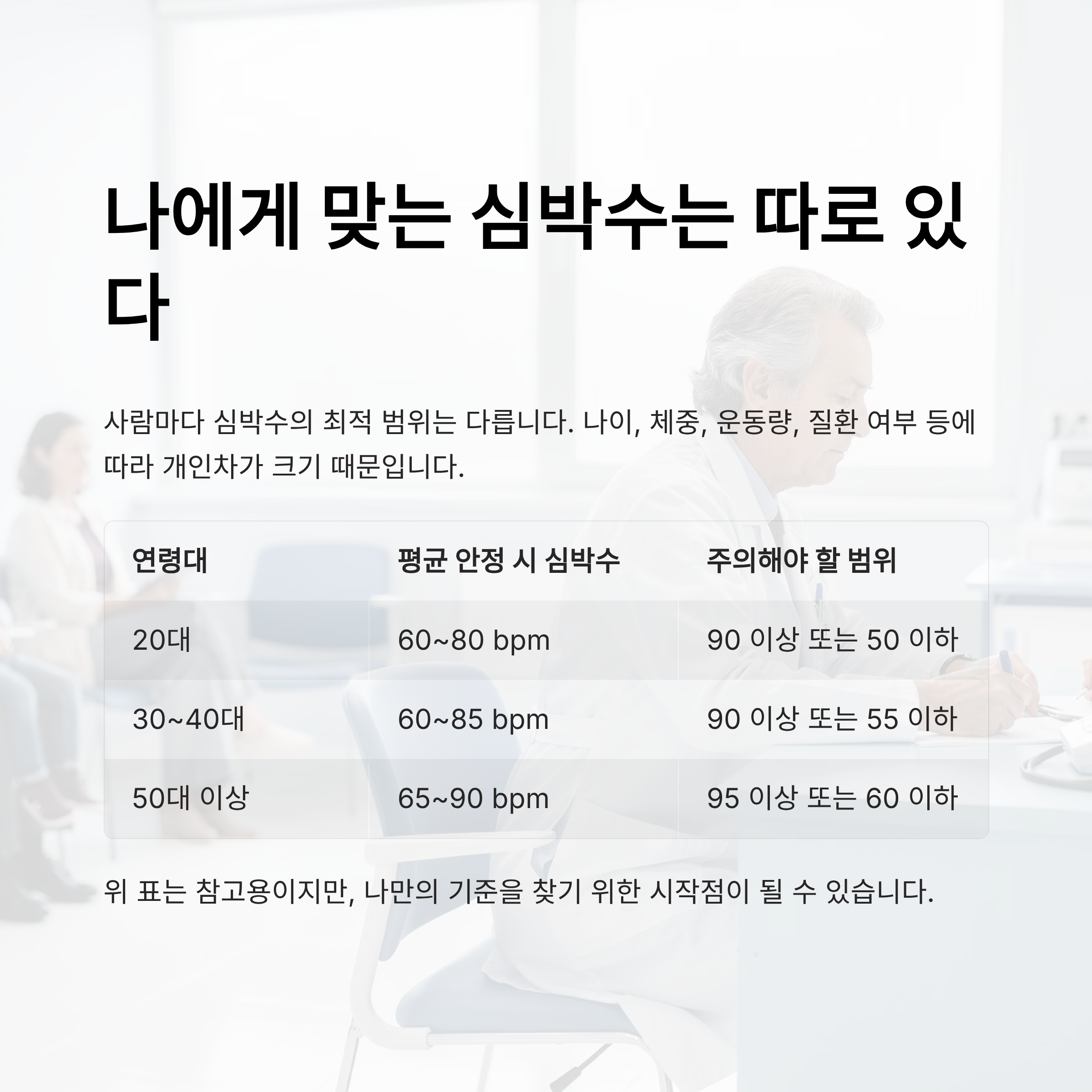 예를 들어, 운동선수처럼 심장이 강한 사람은 심박수가 50 이하로 내려가도 문제가 없을 수 있고, 반대로 스트레스나 호르몬 변화로 인해 일시적으로 높아지는 경우도 있죠.