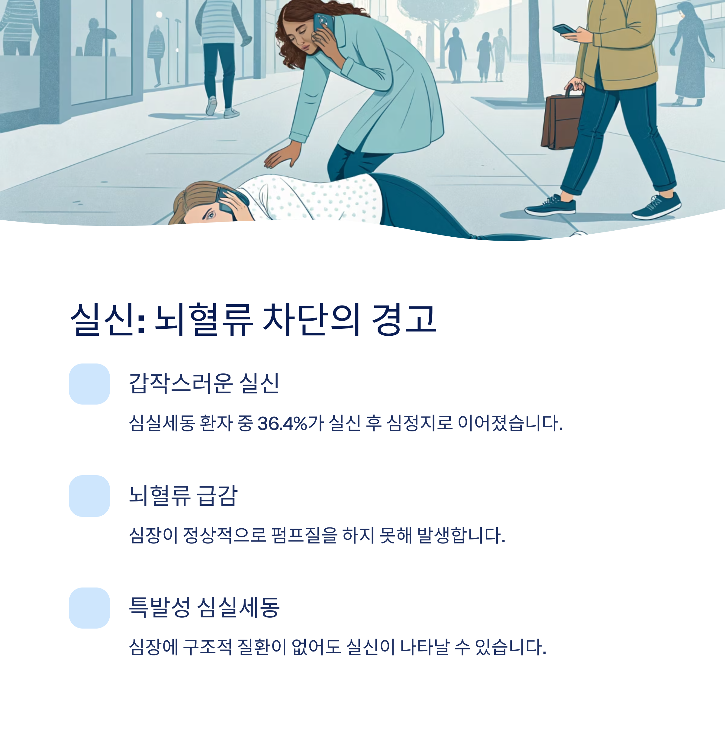갑작스러운 실신은 심실세동의 강력한 경고입니다.
