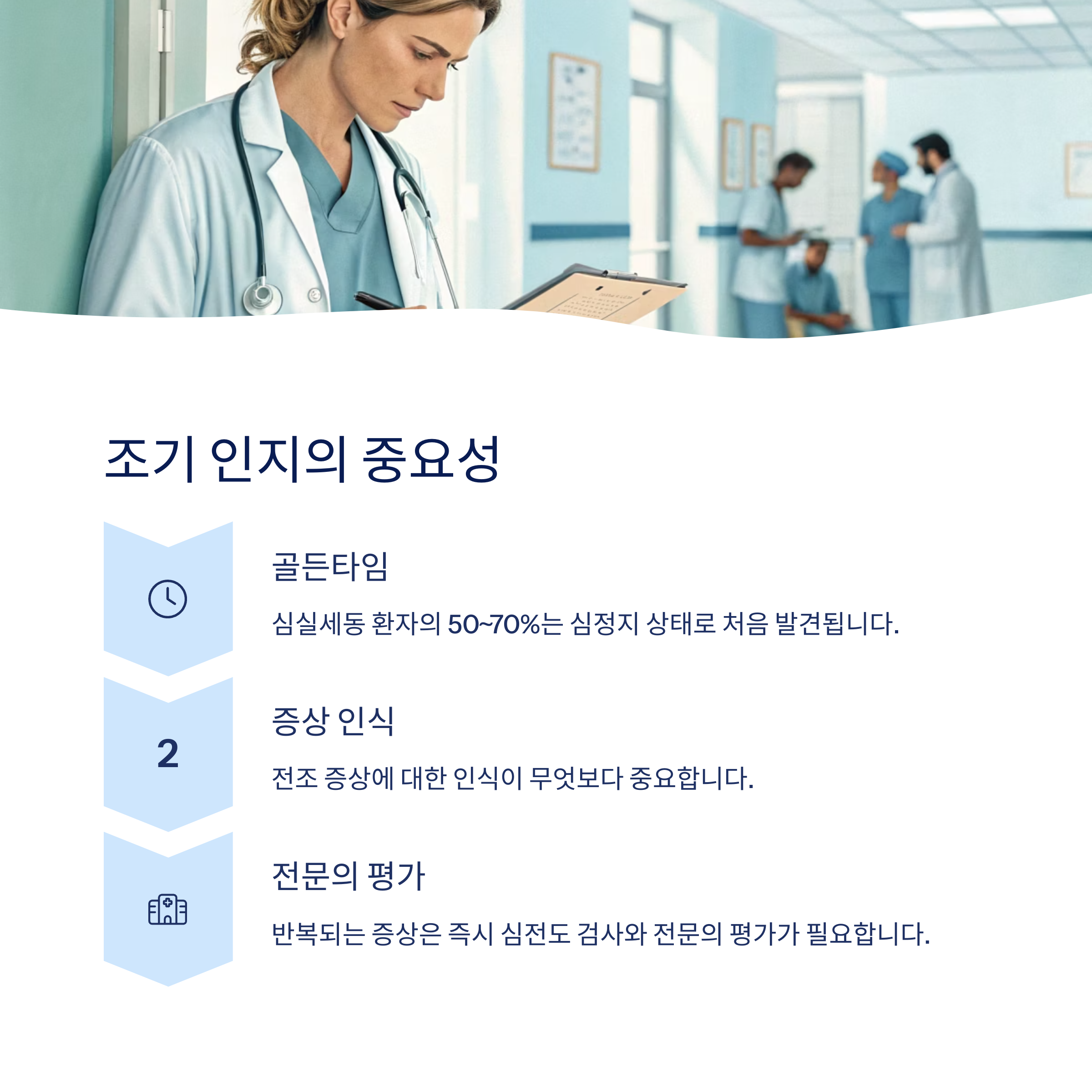 특발성 심실세동의 경우, 일반적인 검진으로는 원인을 찾기 어려워 증상만이 유일한 경고 신호일 수 있습니다.