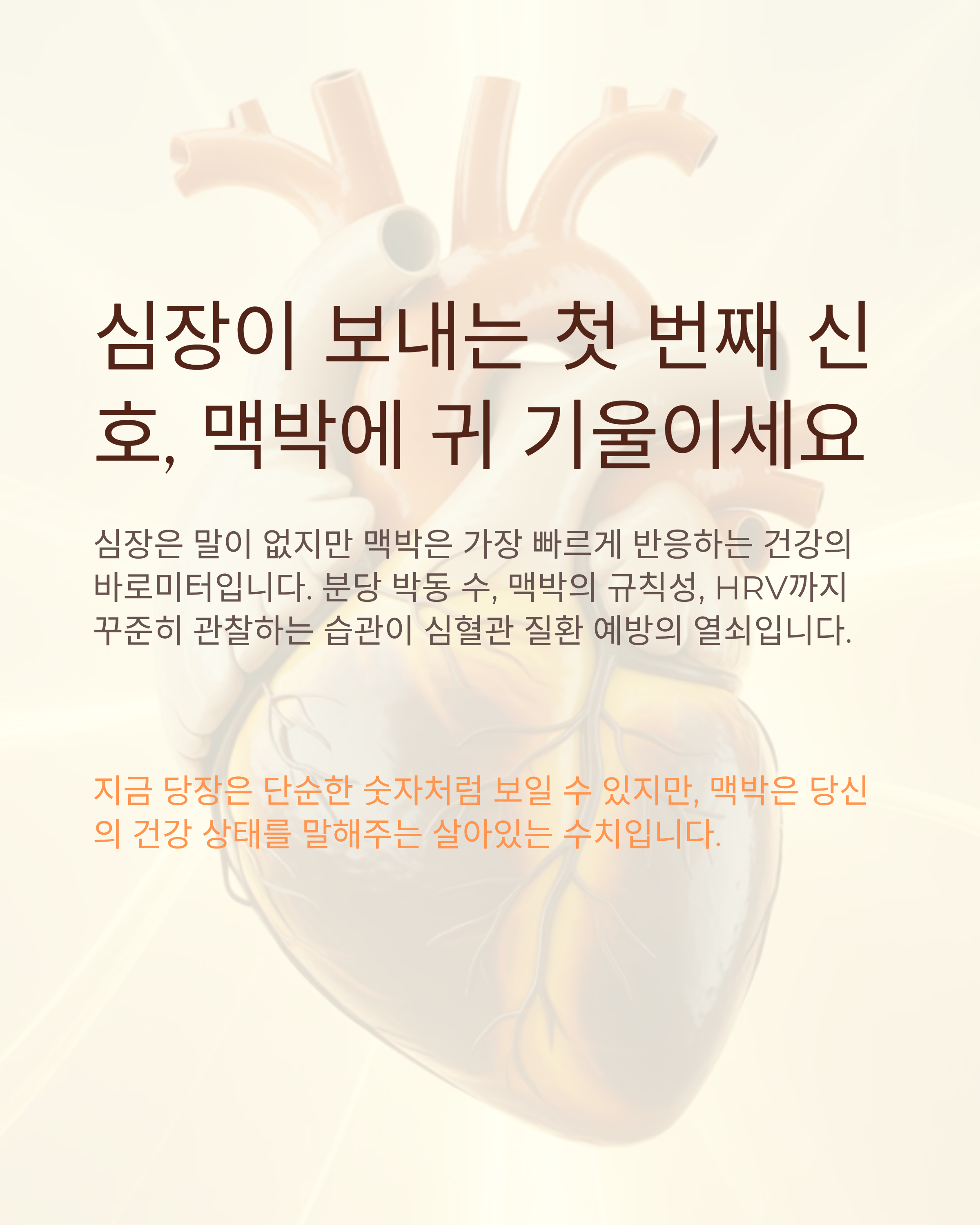 지금 당장은 단순한 숫자처럼 보일 수 있지만, 맥박은 당신의 건강 상태를 말해주는 살아있는 수치입니다.