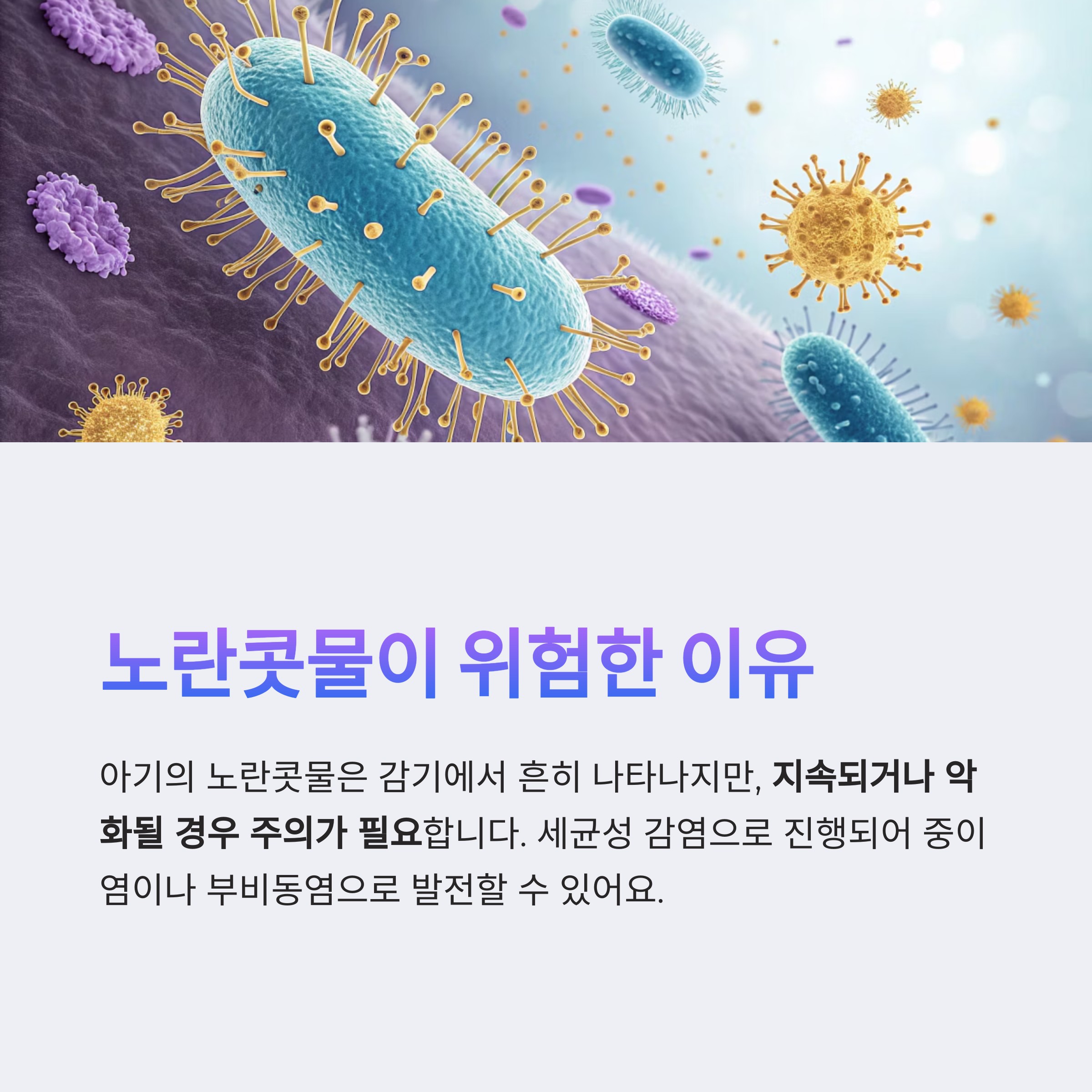 이 글에서는 아기 노란콧물의 임상적 의미와 함께, 방치할 경우 나타날 수 있는 주요 질환들을 정리합니다