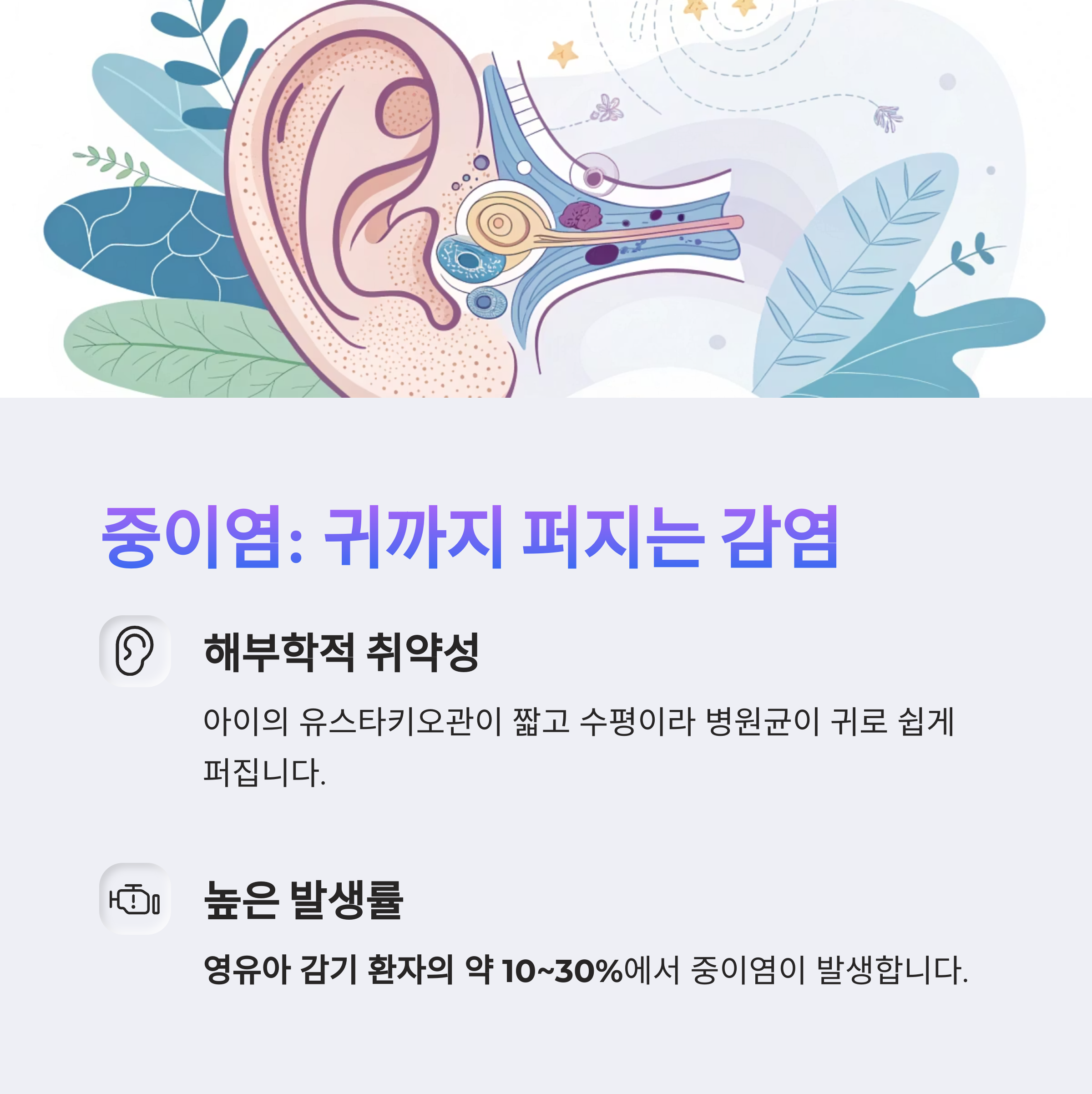아기의 면역력과 해부학적 특성상 빠른 관리가 중요합니다