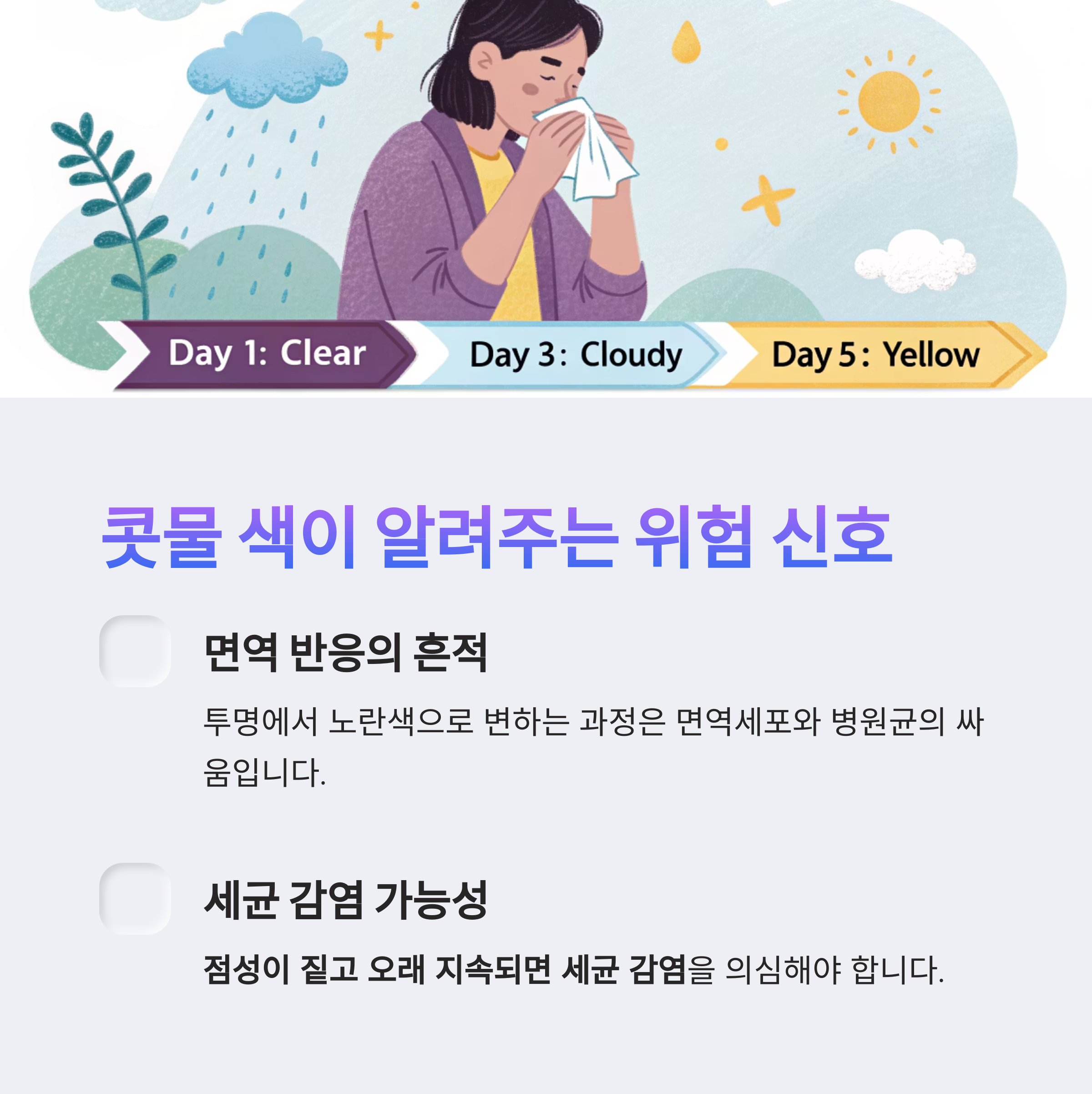 콧물 색 변화가 말해주는 감염의 신호