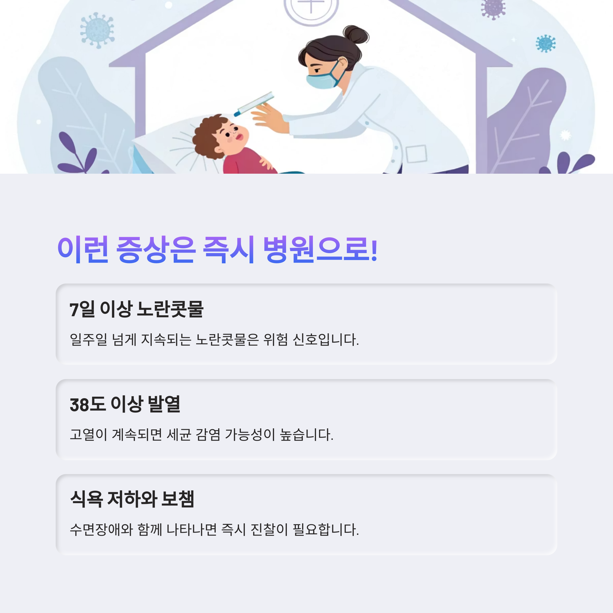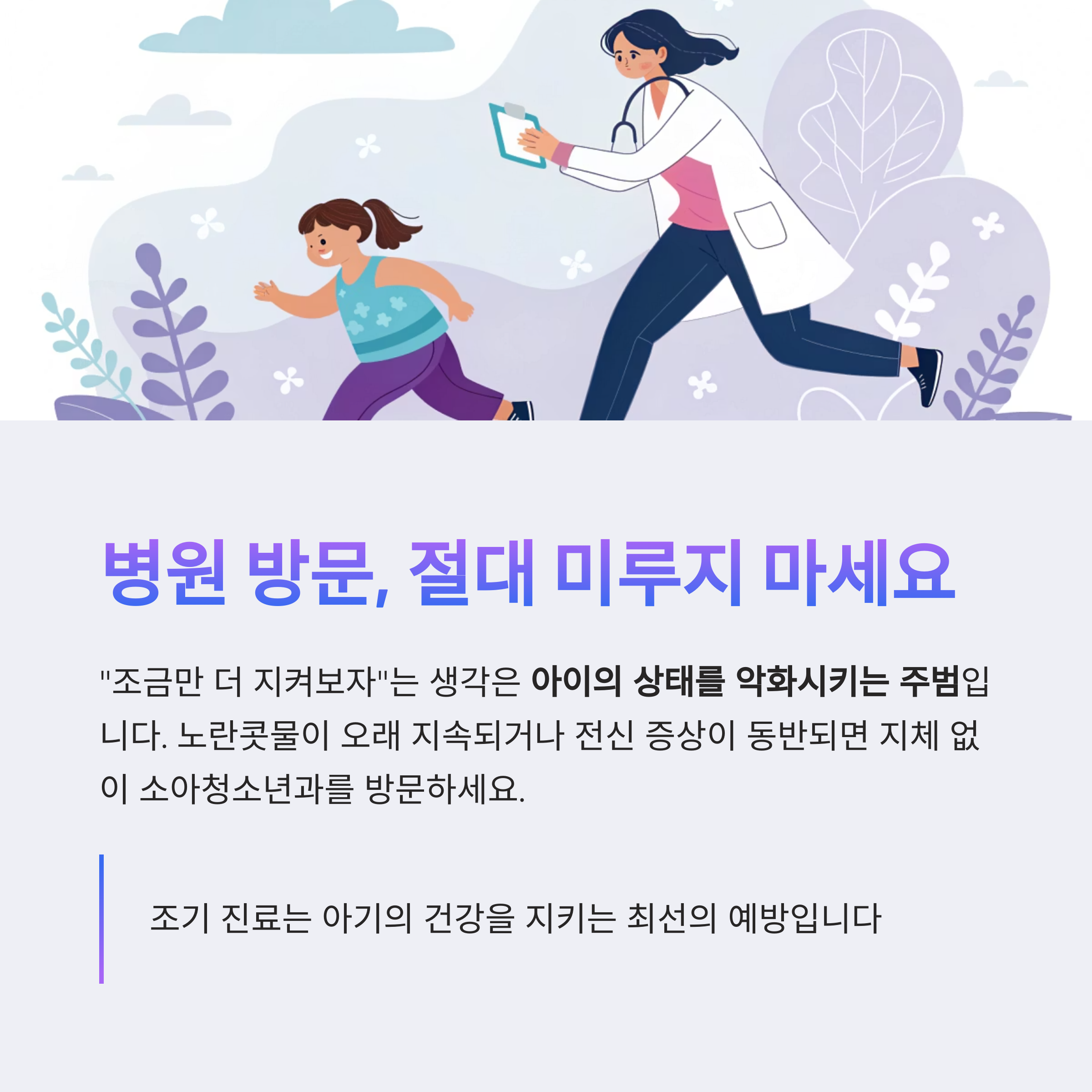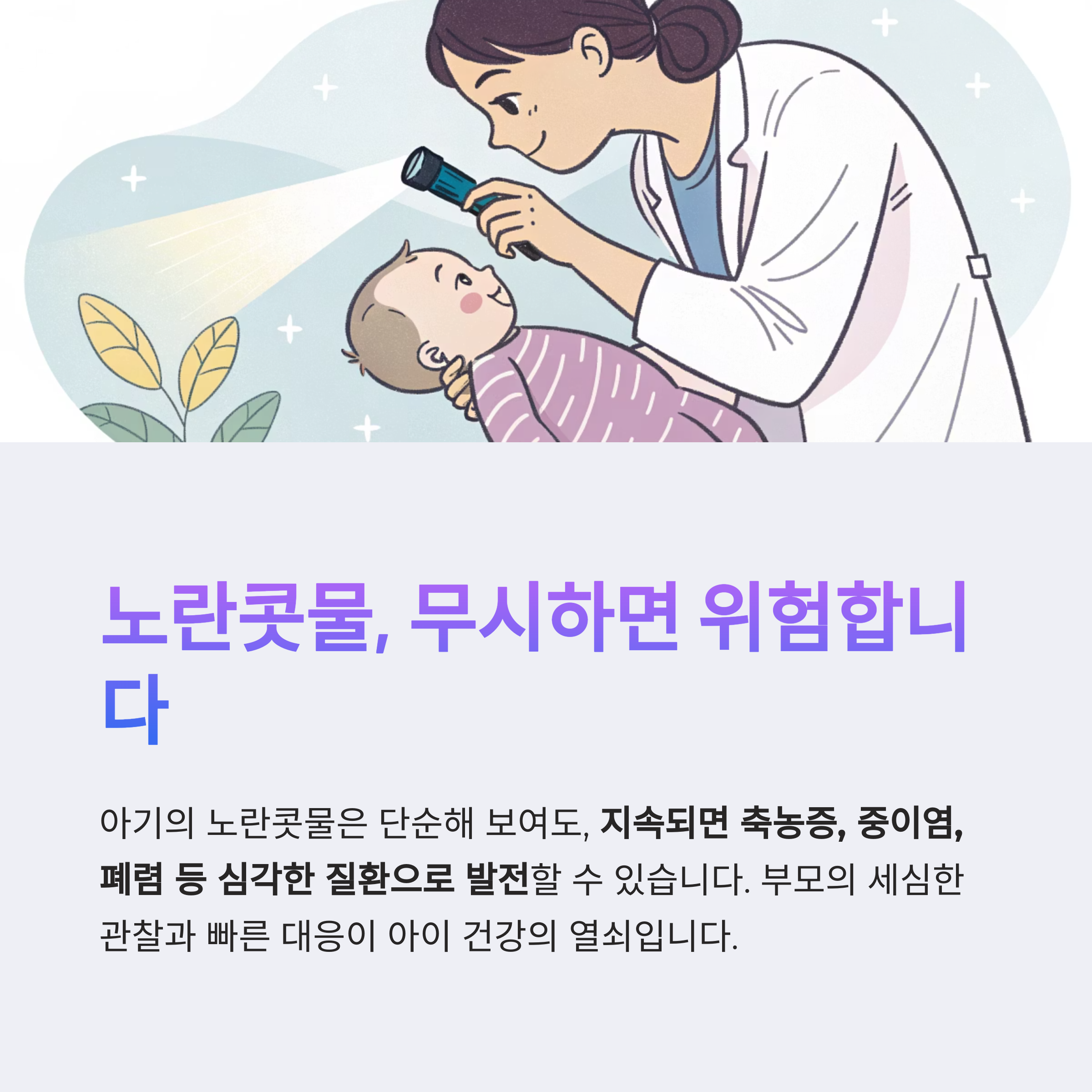 부모의 세심한 관찰과 빠른 대응이 아이 건강의 열쇠입니다