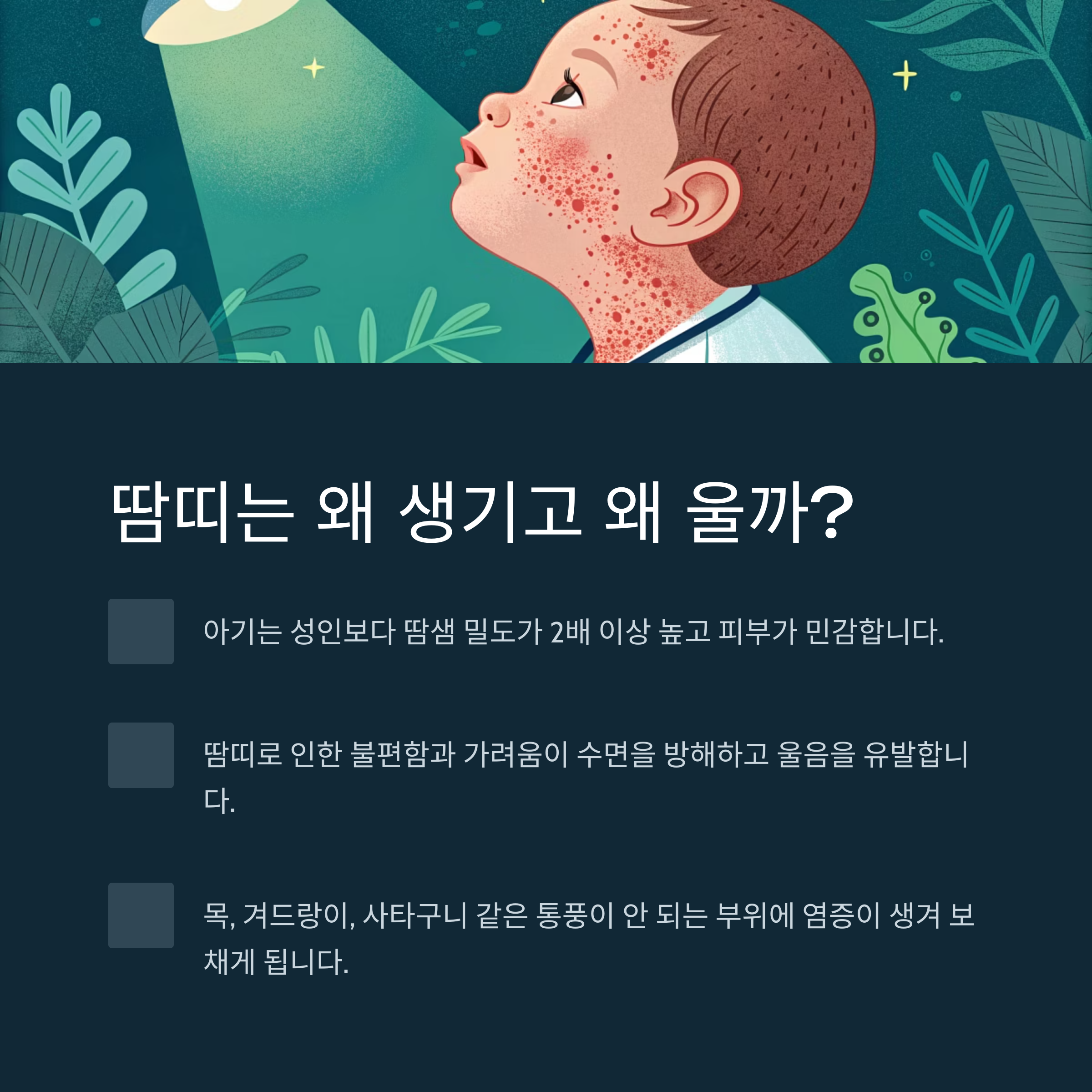 왜 아기는 땀띠 때문에 그렇게 울까요? 그 해답은 바로 '환경 관리'에 있습니다.