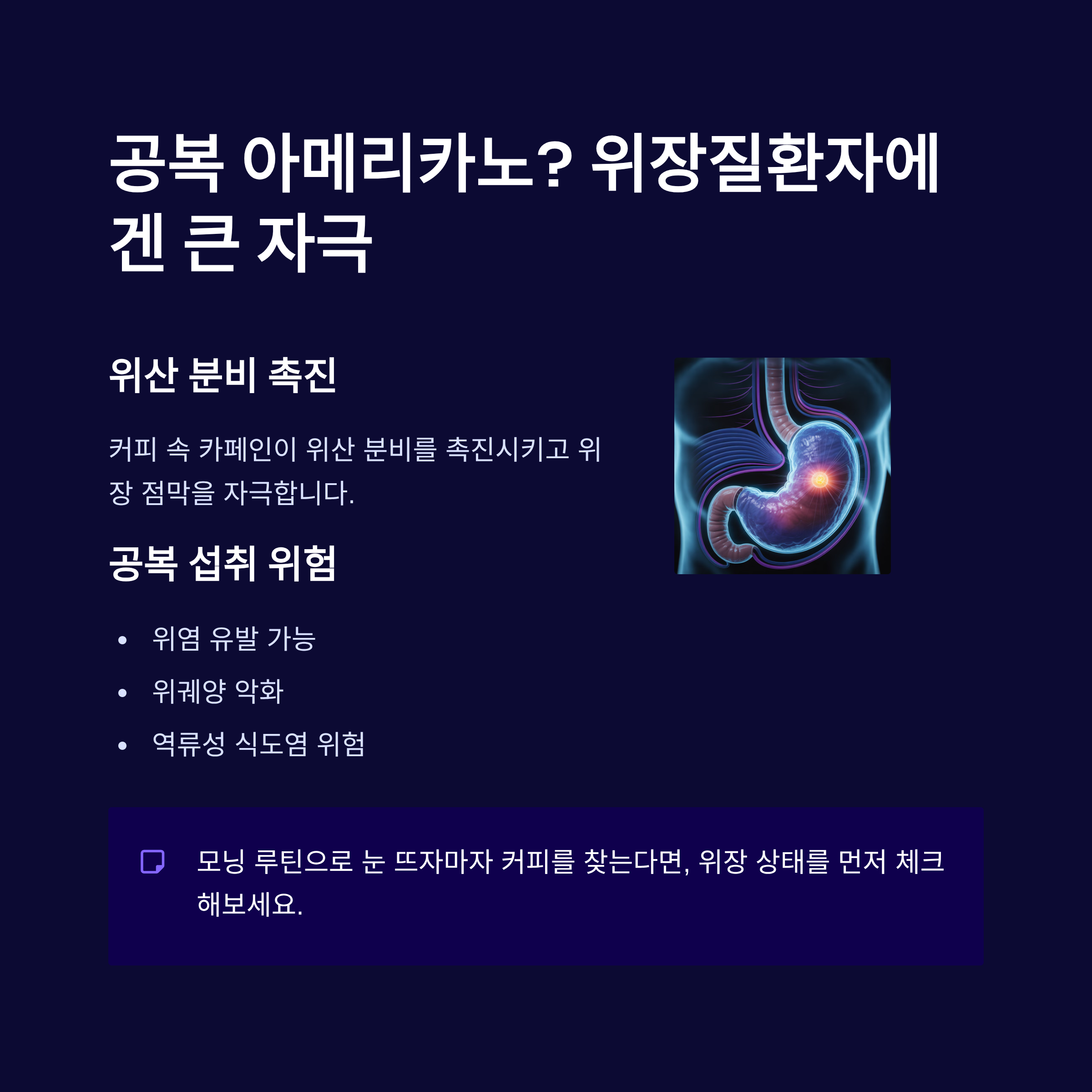 모닝 루틴처럼 아침에 눈 뜨자마자 커피를 찾는다면, 위장 상태를 먼저 체크해보세요.