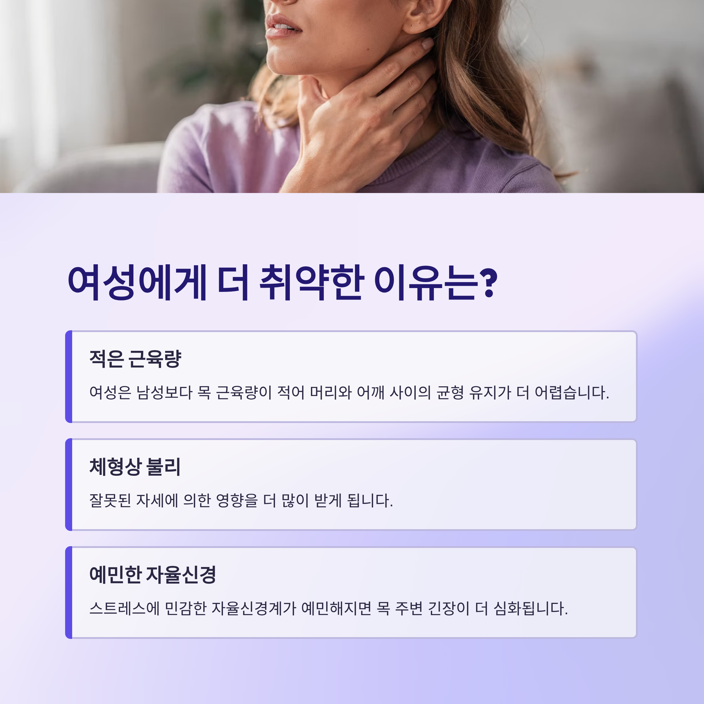 매일 7시간 이상 자는데도 아침이면 여전히 피곤하고, 낮엔 무기력한 기분이 계속되시나요? 특히 여성분들 사이에서 흔하게 나타나는 이 증상은 단순한 수면 부족이나 스트레스 때문만은 아닐 수 있습니다. 피로가 만성적으로 이어지고 있다면 ‘호르몬’만 의심할 게 아니라 의외의 한 부위, 바로 목 건강을 점검해보셔야 할 때입니다. 오늘은 수면을 방해하고 몸 전체 피로감에 큰 영향을 미치는 목과 그 주변 근육에 대해 이야기해볼게요.