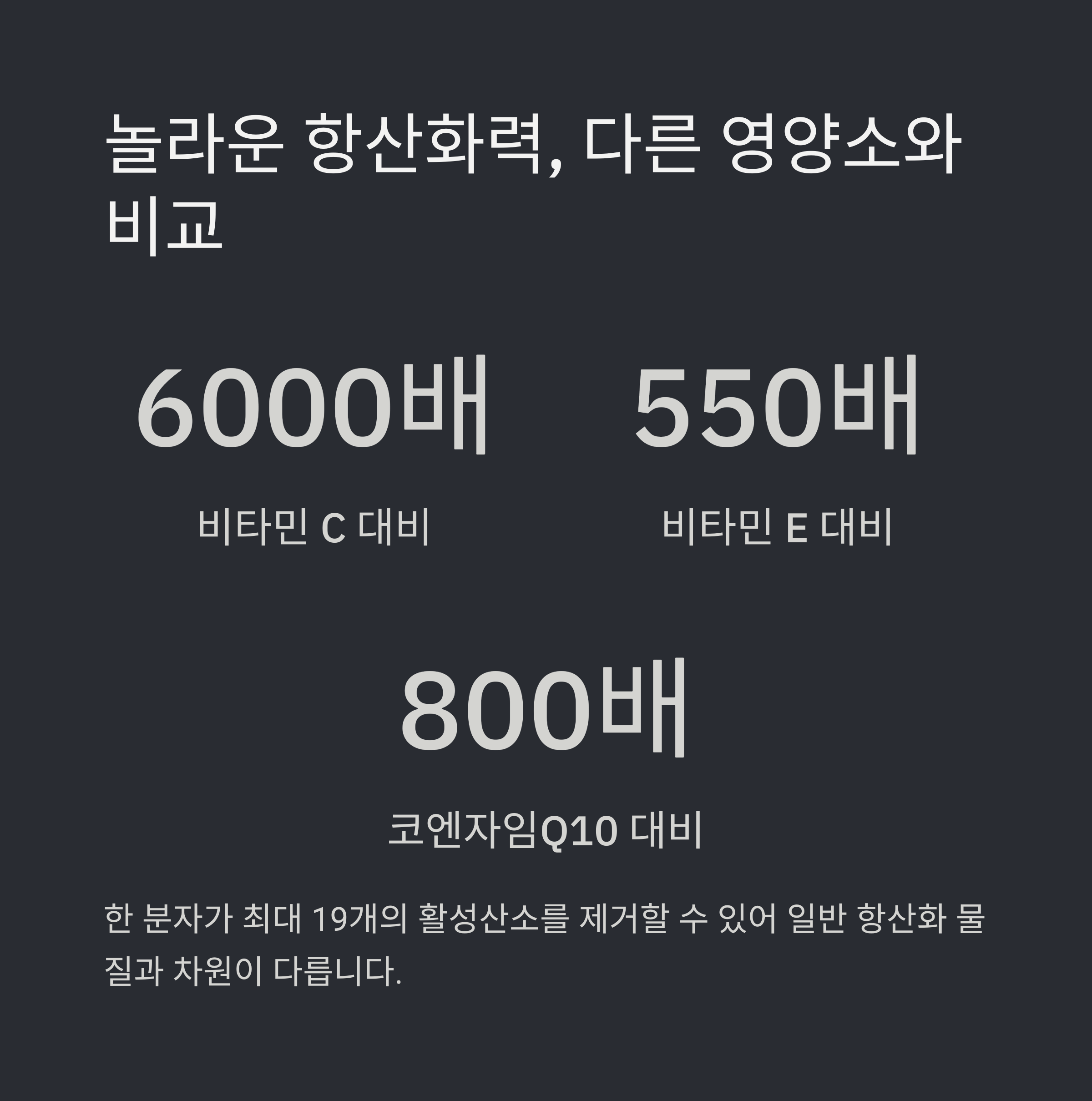 코엔자임Q10과 비교해도 800배 이상으로 평가됩니다.