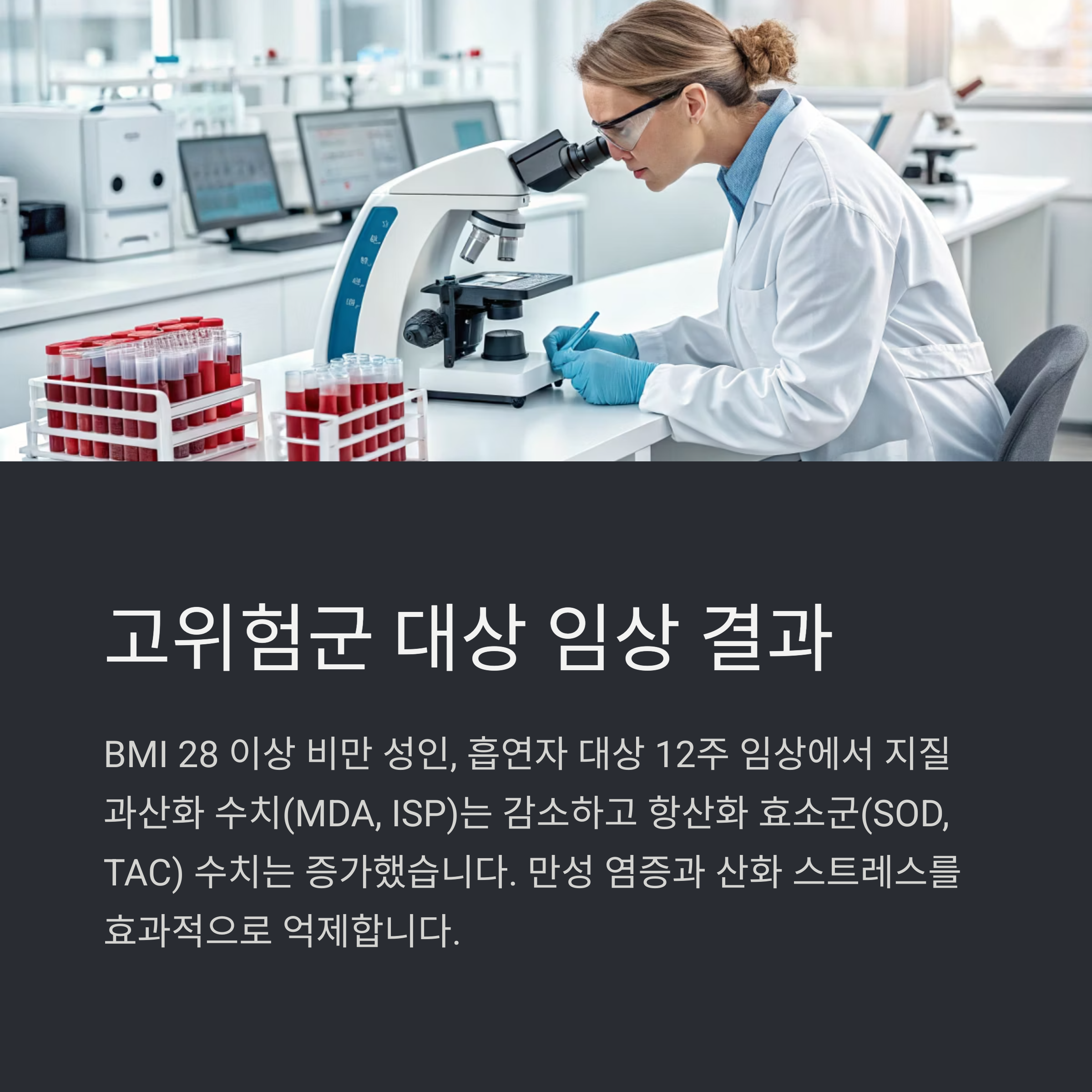 지질 과산화 수치(MDA, ISP)가 유의미하게 감소했습니다.